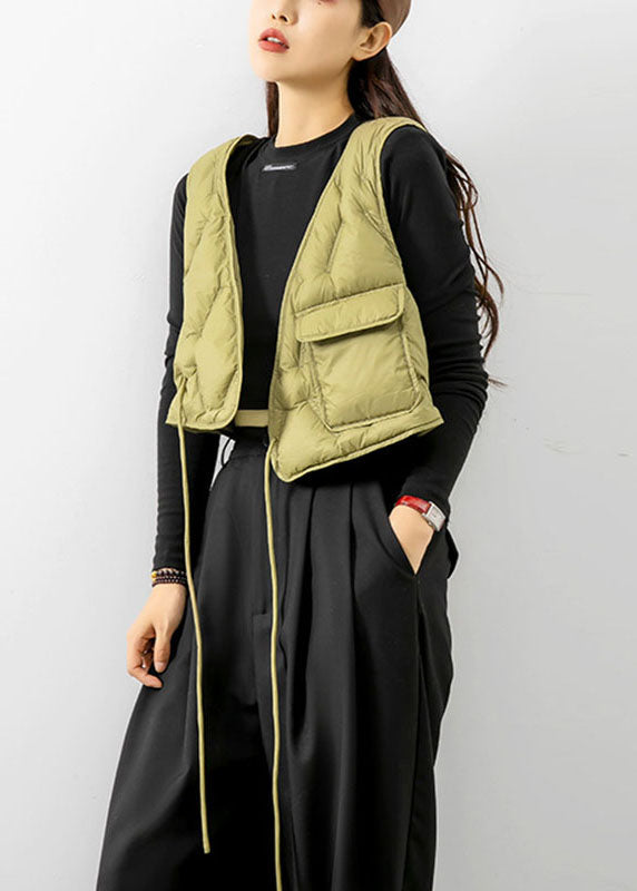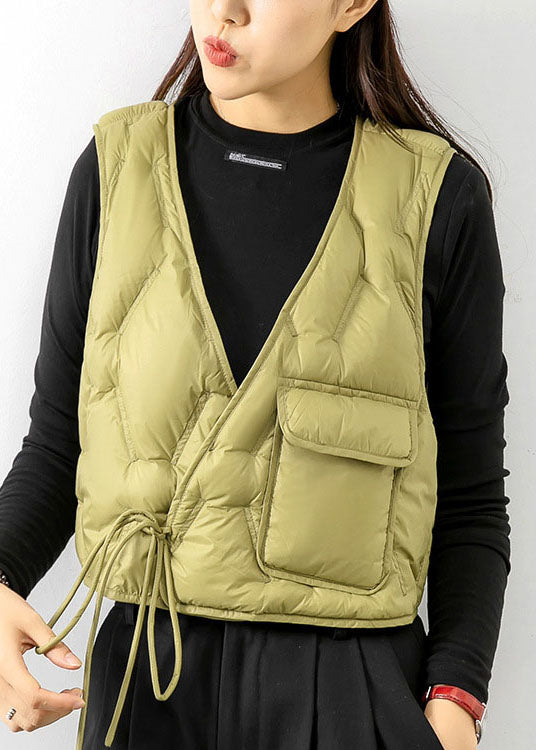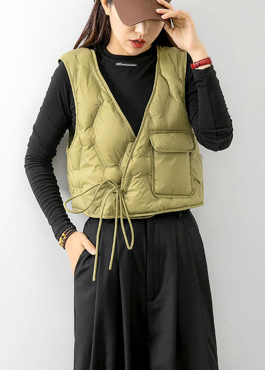 Boho Light Green V Neck tie waist fashion Winter Sleeveless down vest
