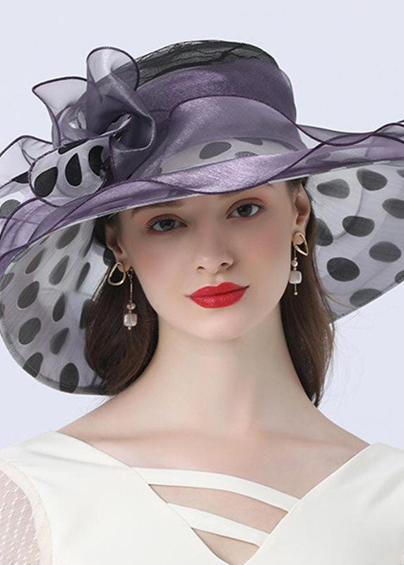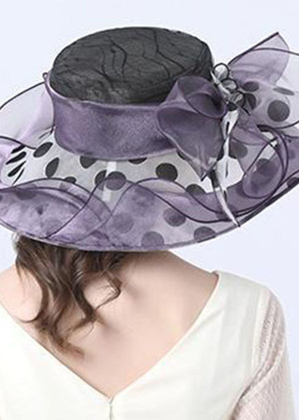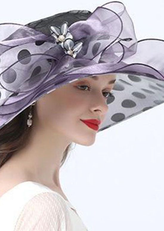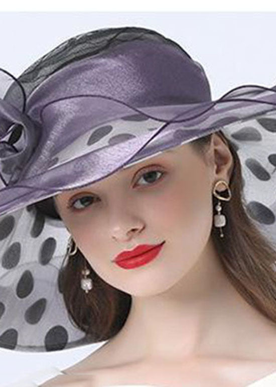 Boho Purple Floral Decorated Ruffles Tulle Floppy Sun Hat