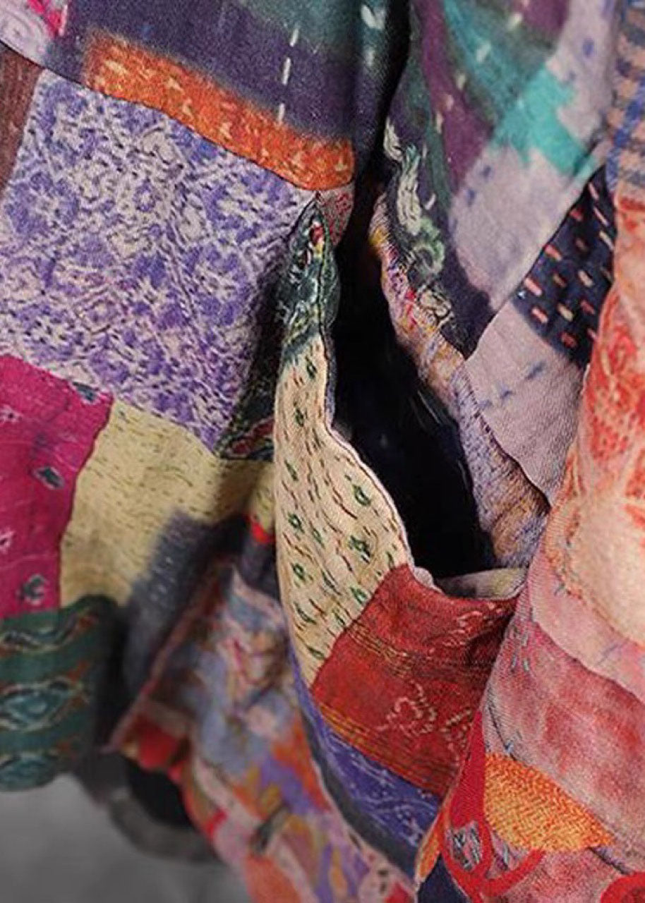 Boho retro Print Button Pockets Casual Winter Cotton Parka