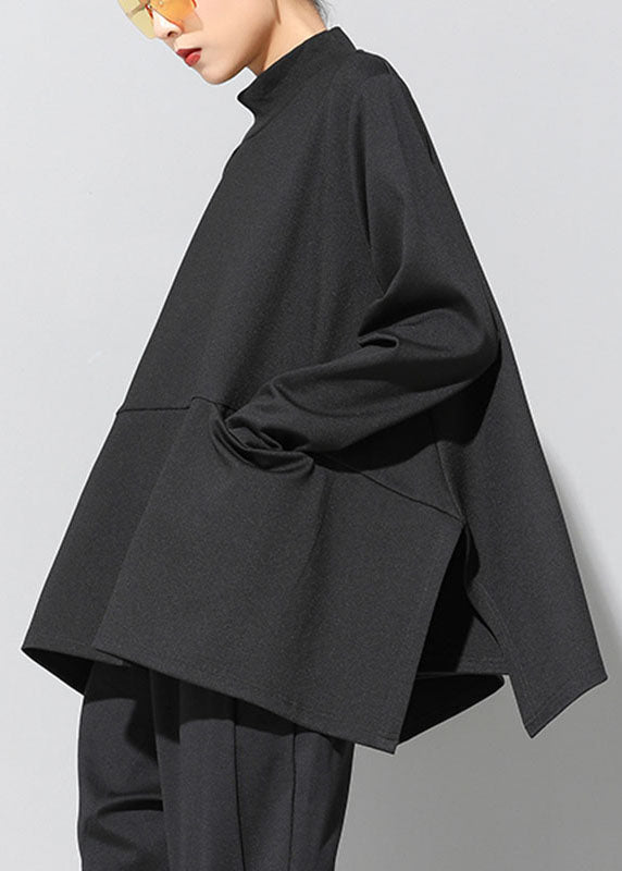 Boutique Black Loose Pockets side open Fall Long sleeve Top