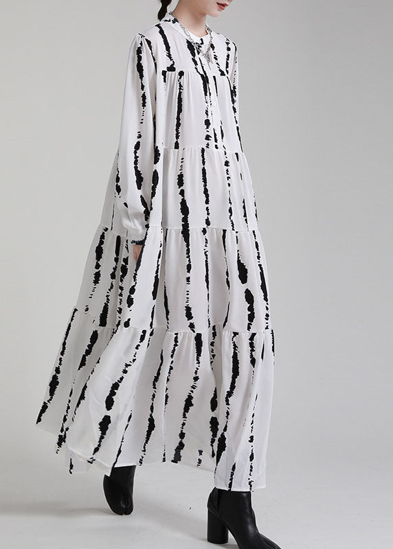 Boutique White Print Patchwork Asymmetrical Design Fall Vacation Dresses Long sleeve