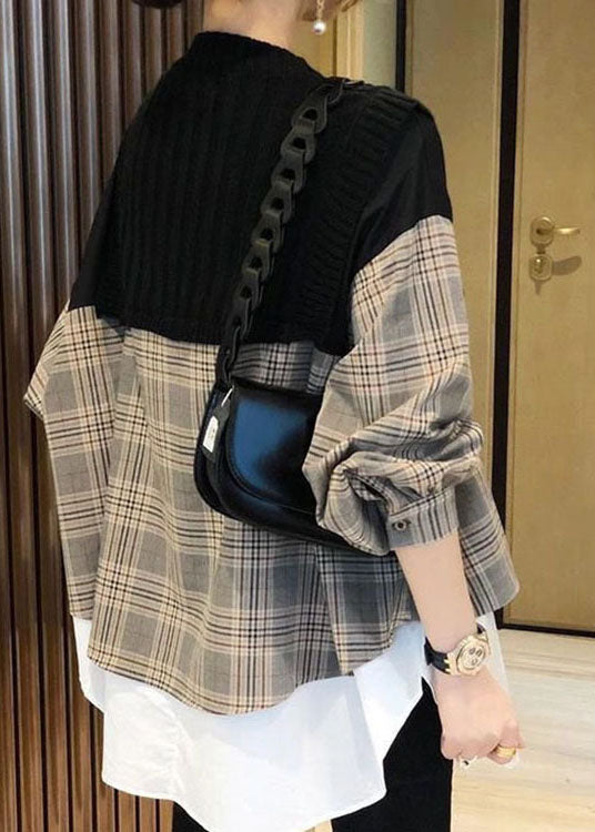 Casual Black Knit Patchwork Plaid Fall Long sleeve Shirt