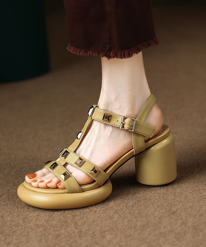 Casual Yellow Rivet Sandals Buckle Strap Chunky Sandals