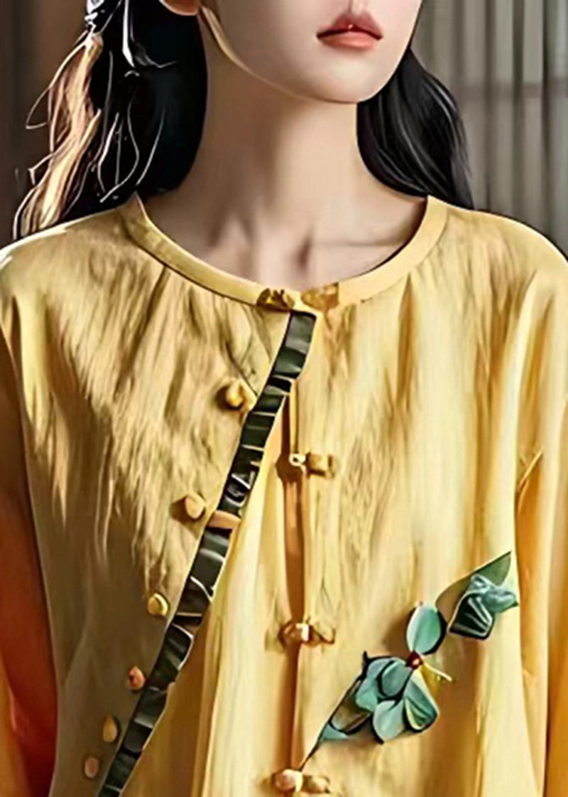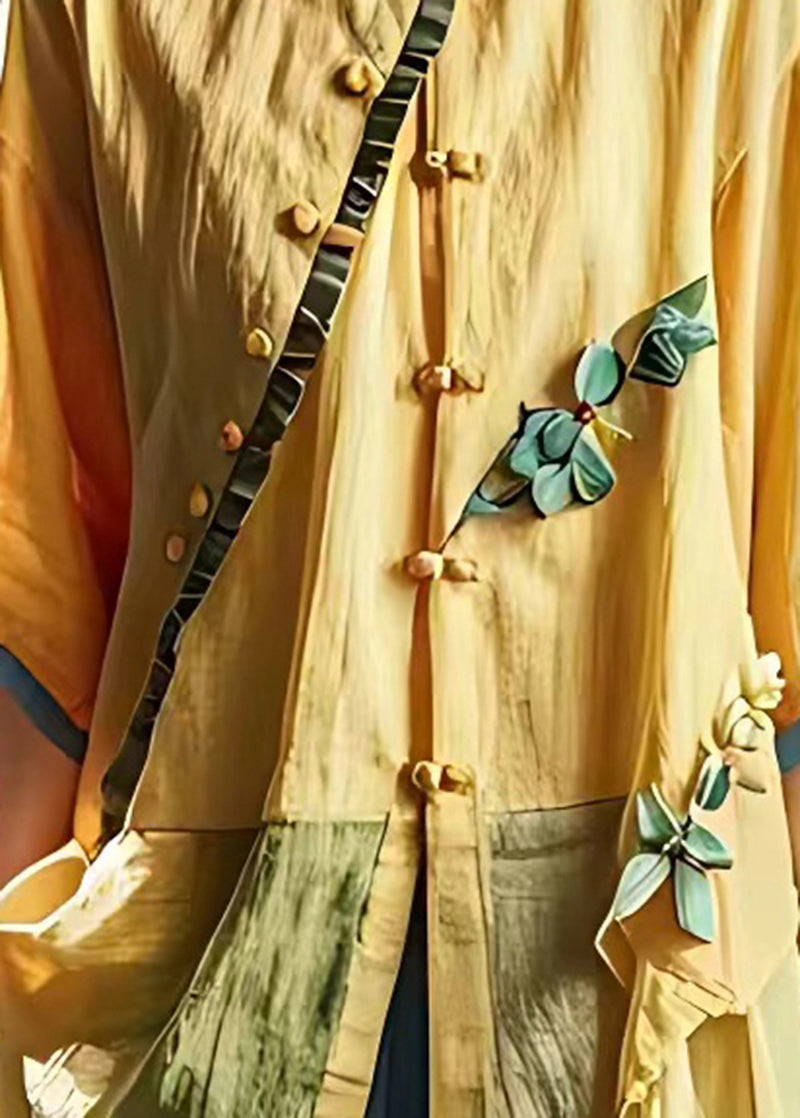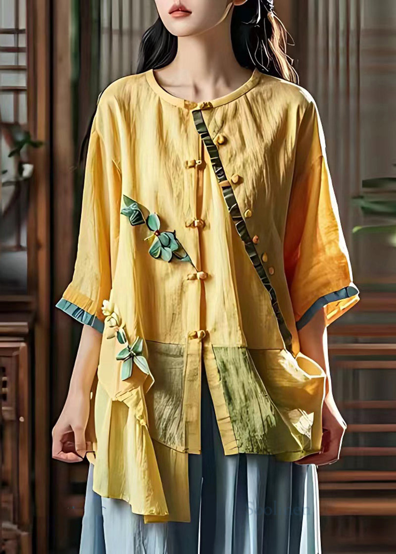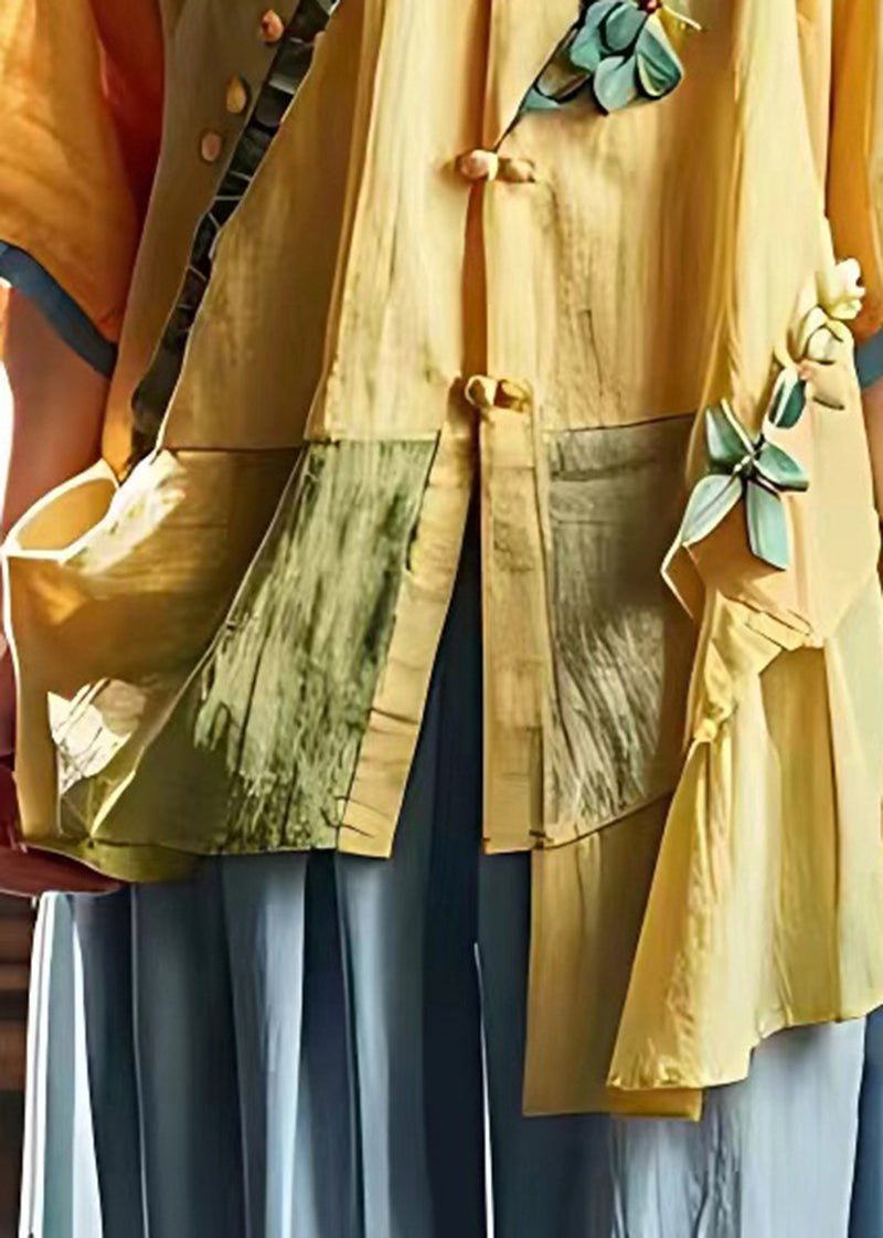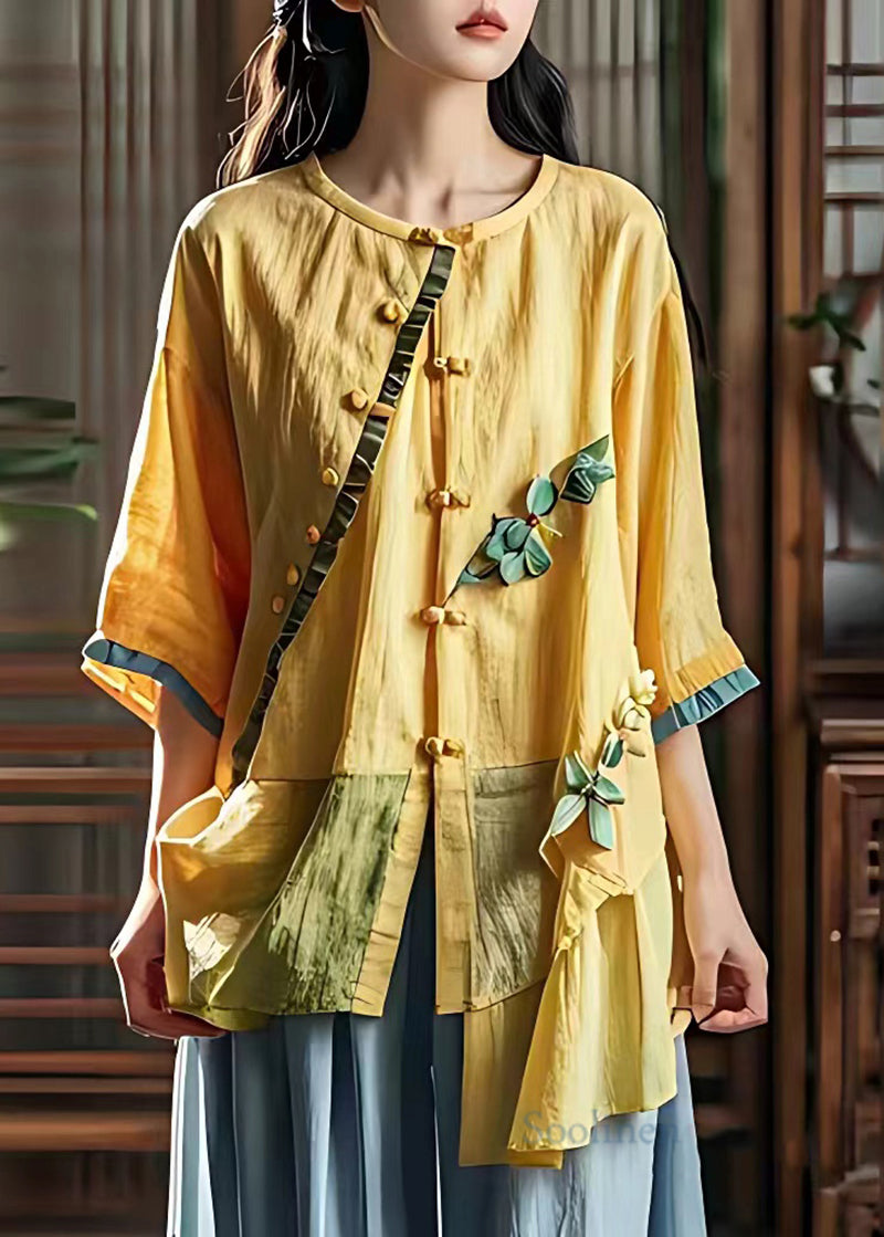 Chic Yellow Asymmetrical Patchwork Wrinkled Linen Shirt Summer