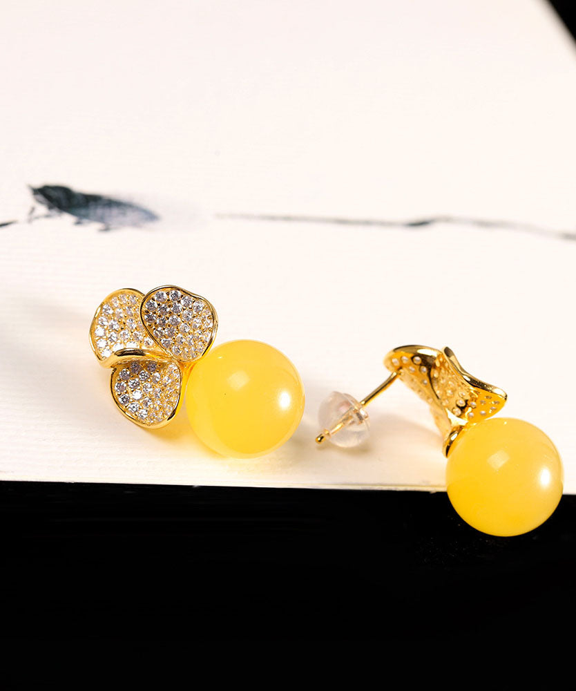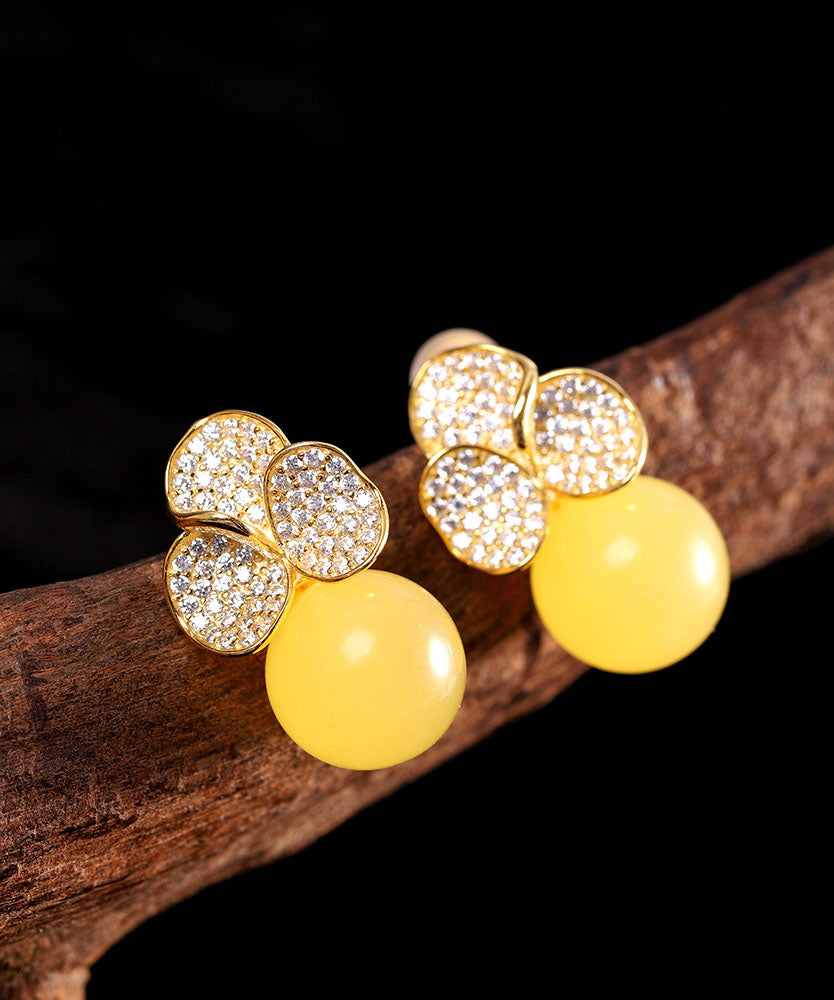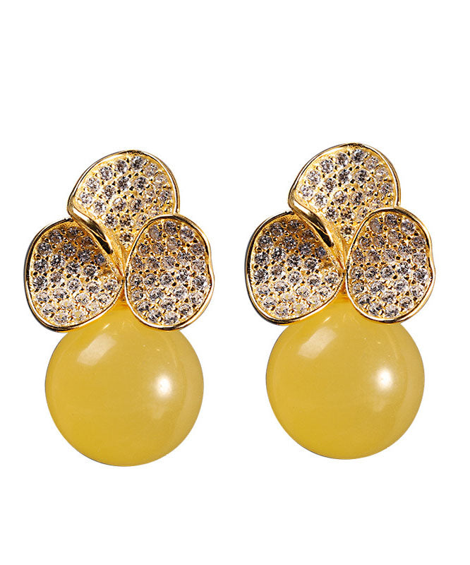 Chic Yellow Sterling Silver Overgild Beeswax Floral Stud Earrings