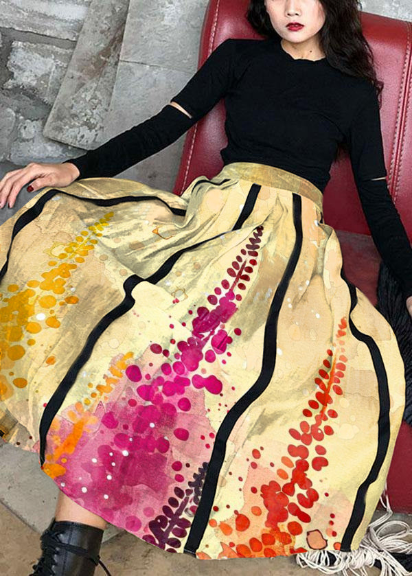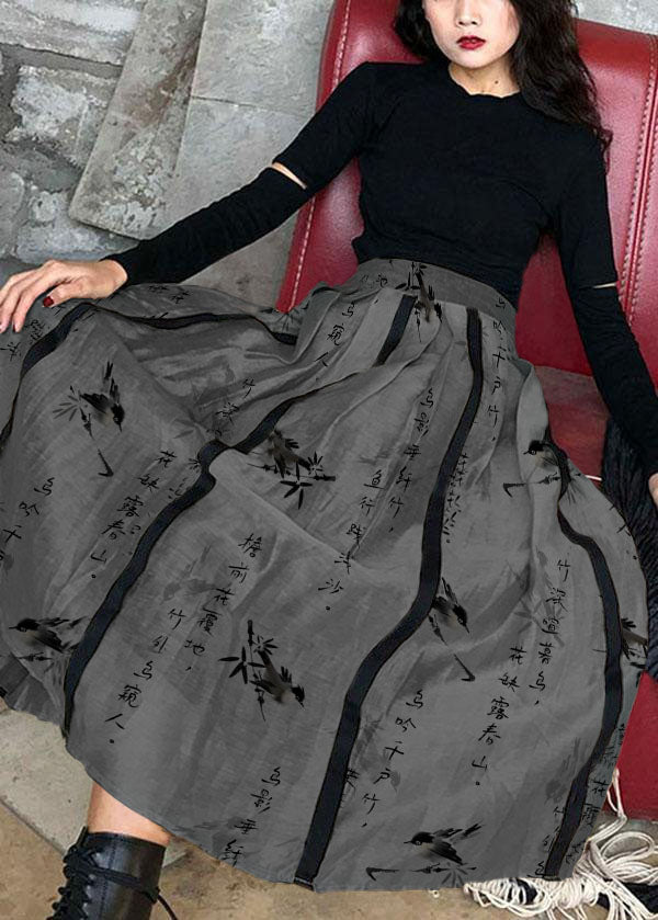 Comfy Beige Patchwork Summer Skirt Cotton Linen
