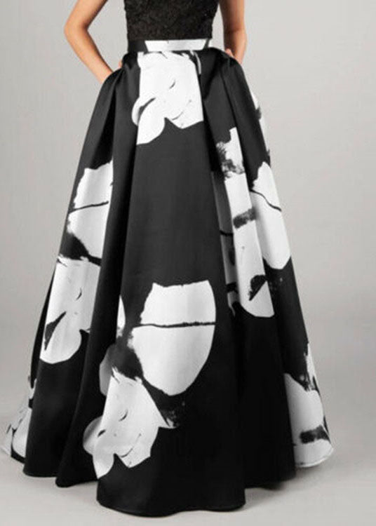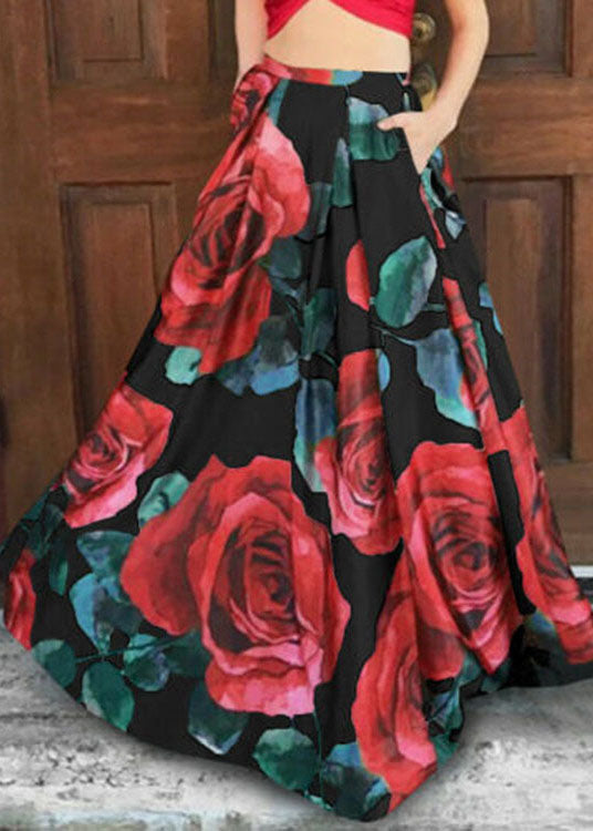 Fashion Yellow Elastic Waist Pockets Print Cotton Skirts Summer