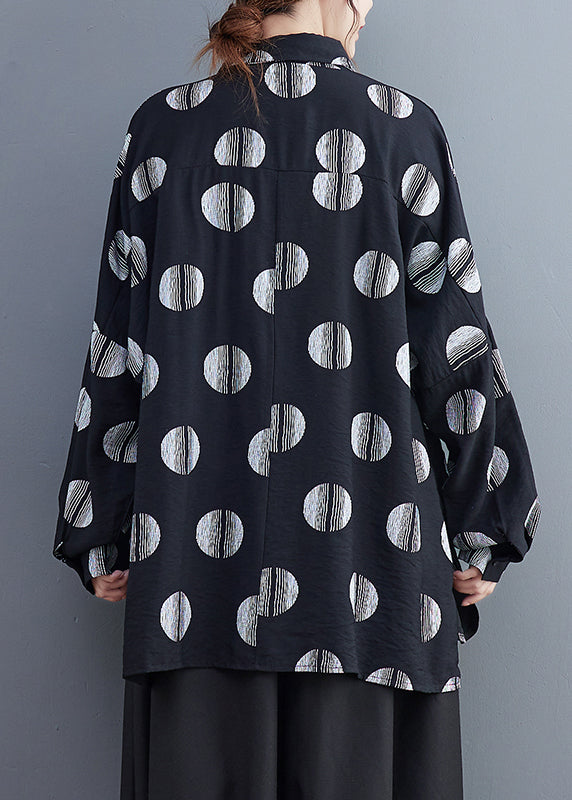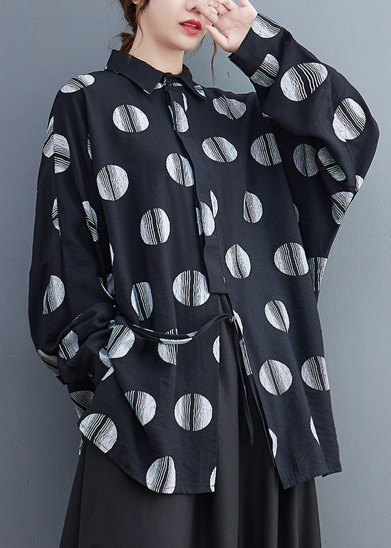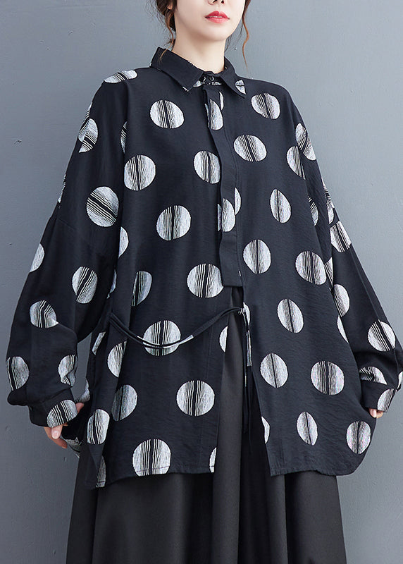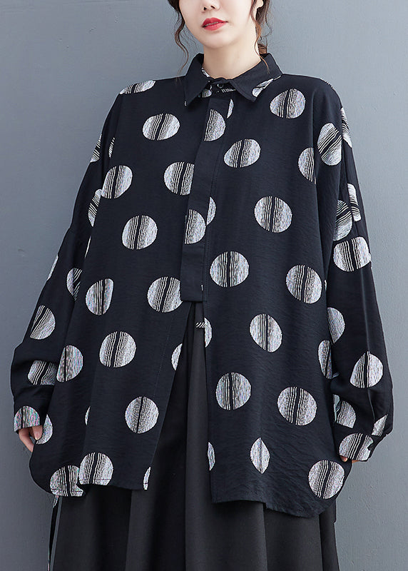Fine Black Dot Print Patchwork Shirts Long Sleeve
