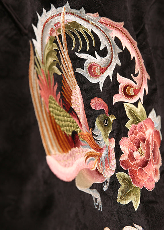 Fitted Black Stand Collar Embroideried Floral Button Waistcoat Fall