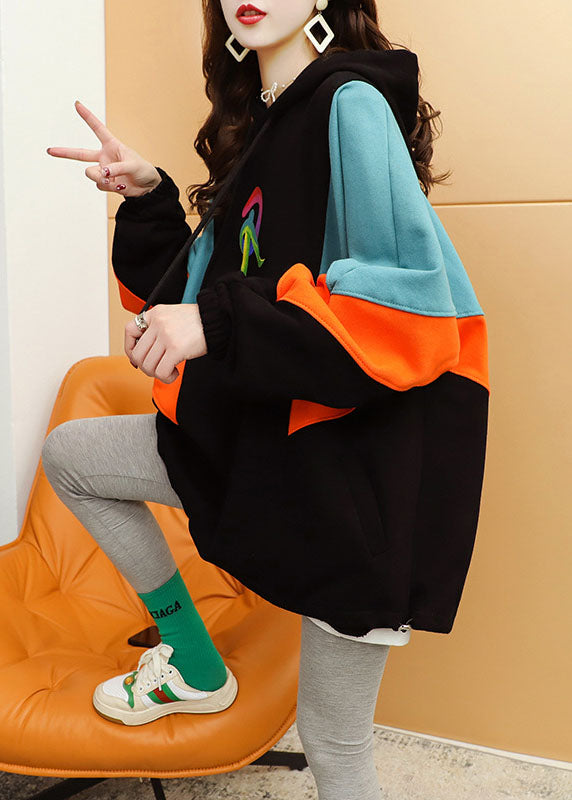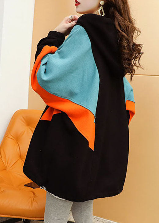 French Blue Hooded Graphic Cotton Sweatshirts Top Winter