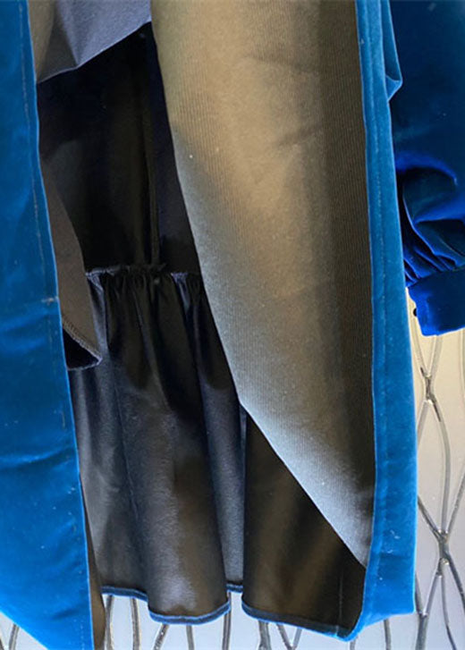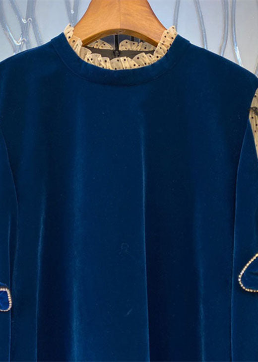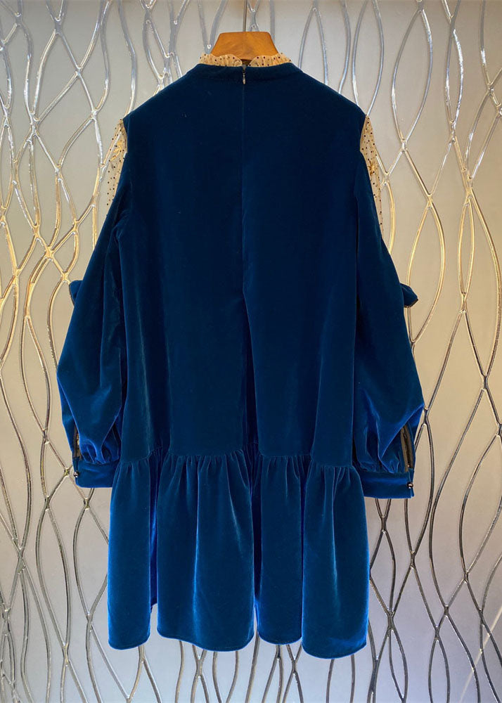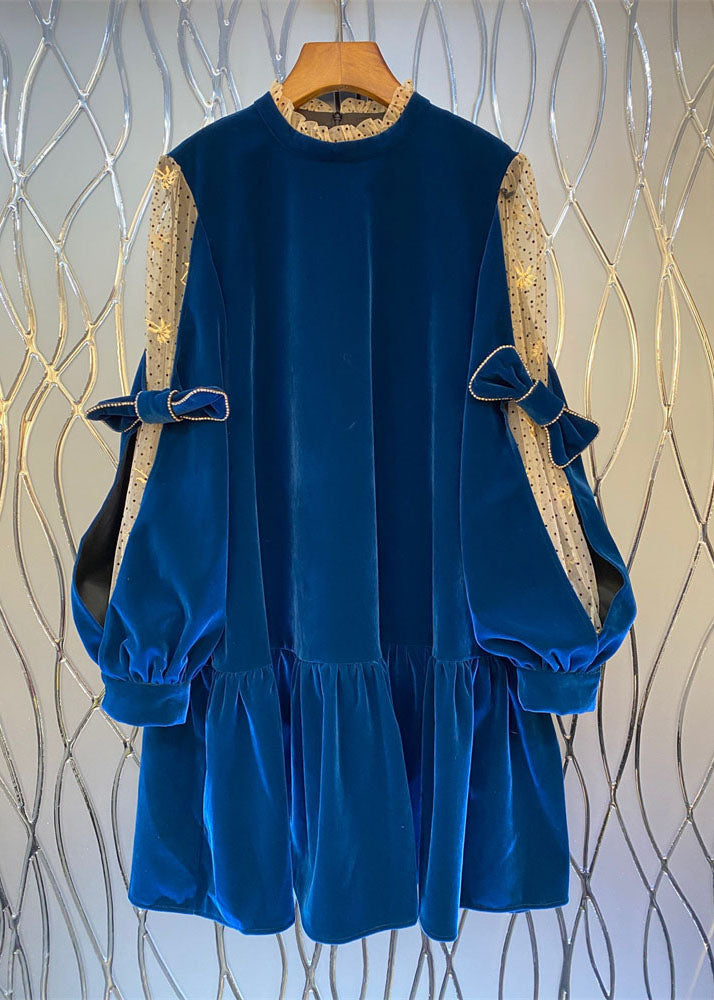 French Blue Tulle Patchwork Velour Shift Dresses Spring