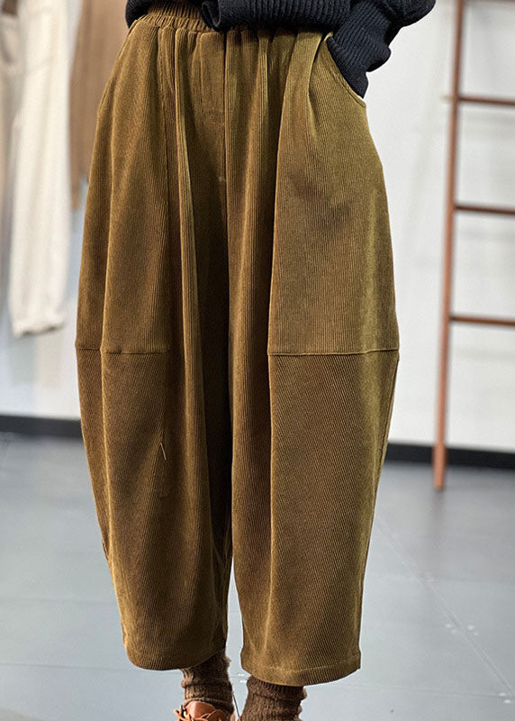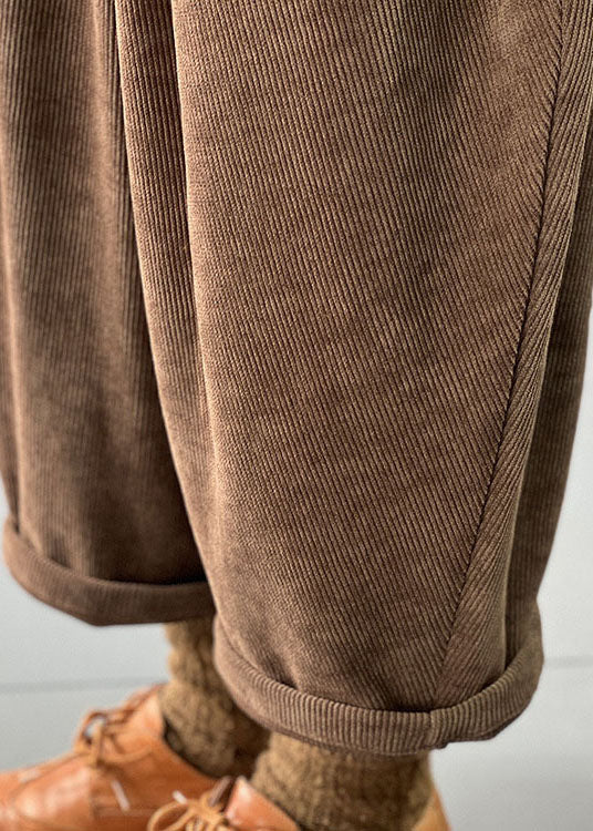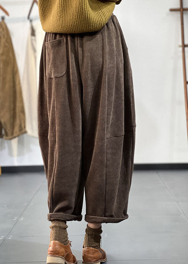 Italian Chocolate Elastic Waist Oversized Pockets Patchwork Corduroy Harem Pants Trousers Winter