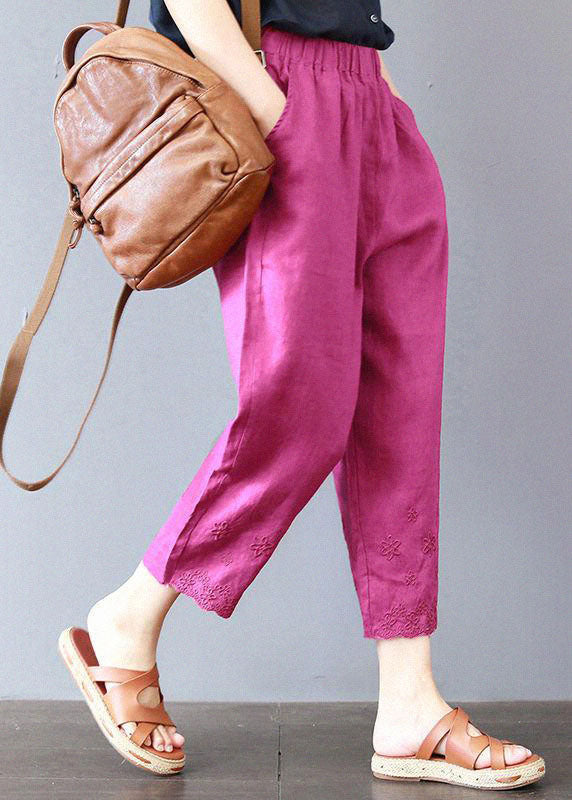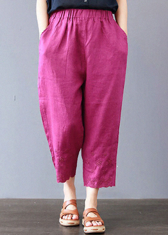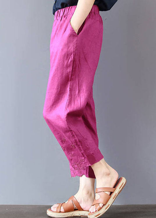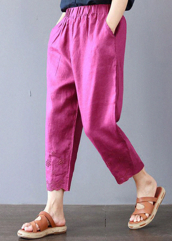 Italian Rose Embroideried Pockets Linen Pants Spring