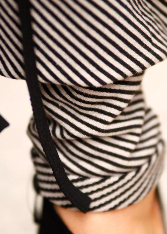 Loose Black Grey Patchwork Striped drawstring Casual Pants Spring