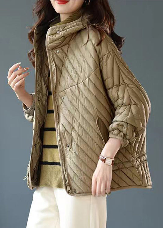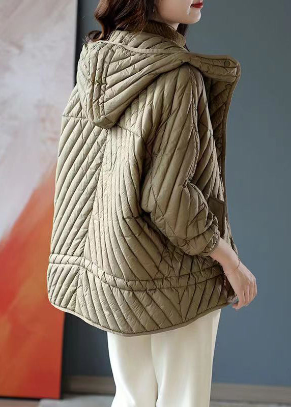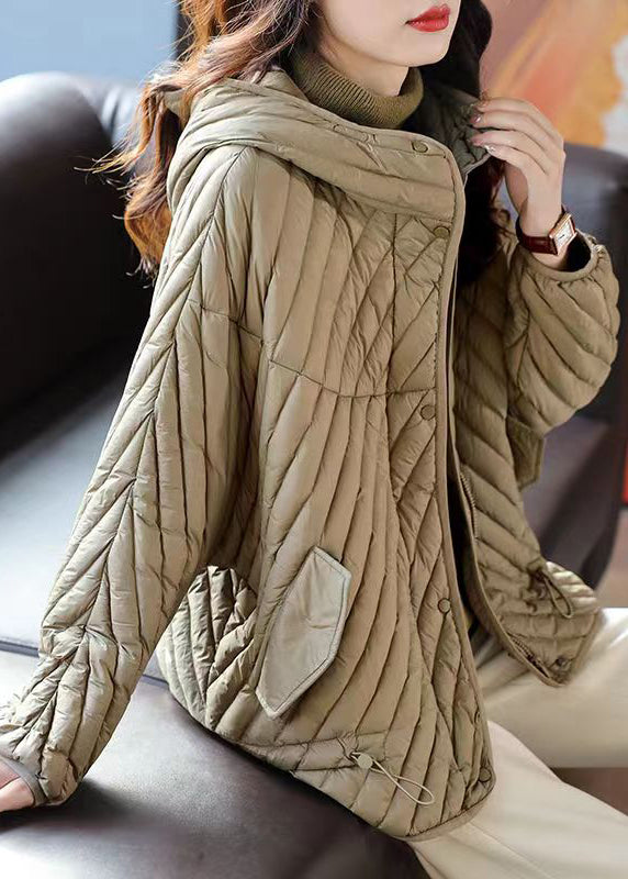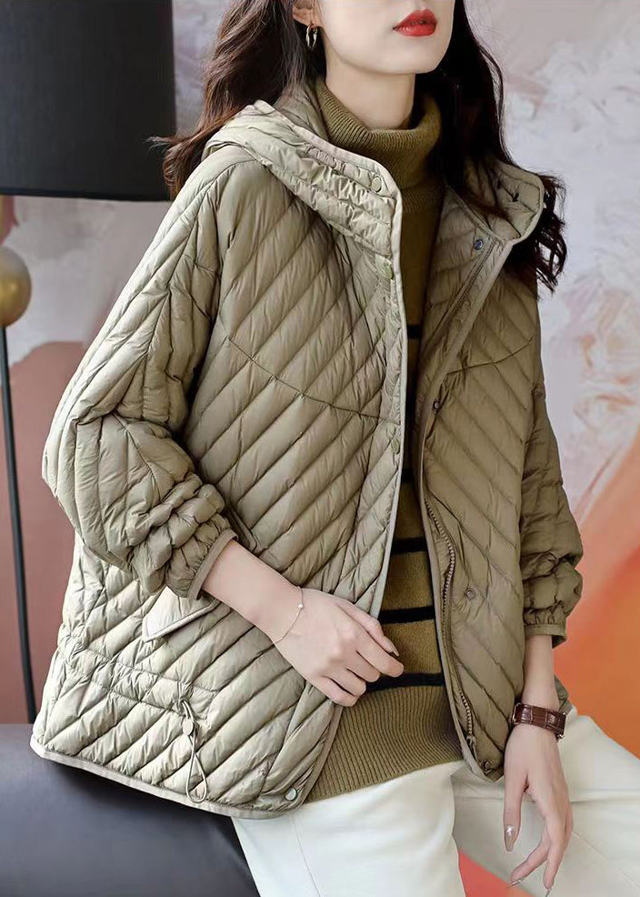 Loose Green Hooded Pockets Drawstring Duck Down Coat Winter