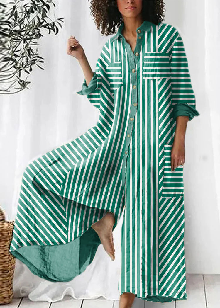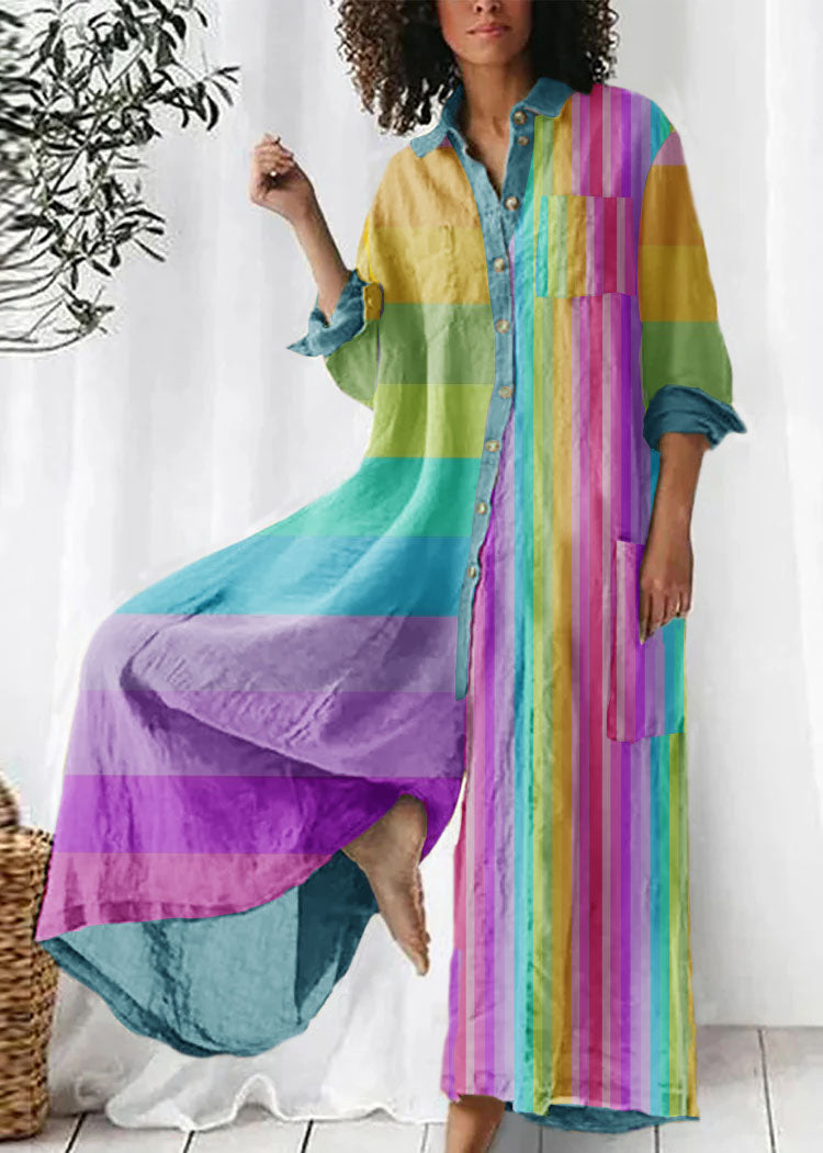 Loose Khaki Peter Pan Collar Button Pockets Linen Jumpsuits Long Sleeve