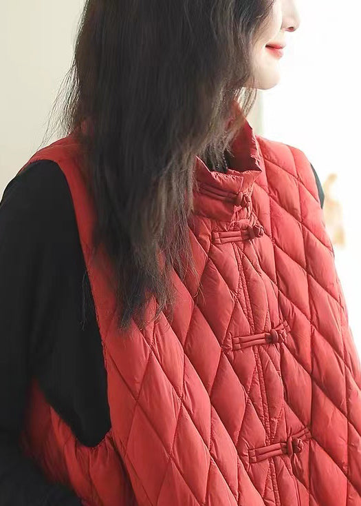 Loose Red Side Open Button Cotton Filled Waistcoat Sleeveless