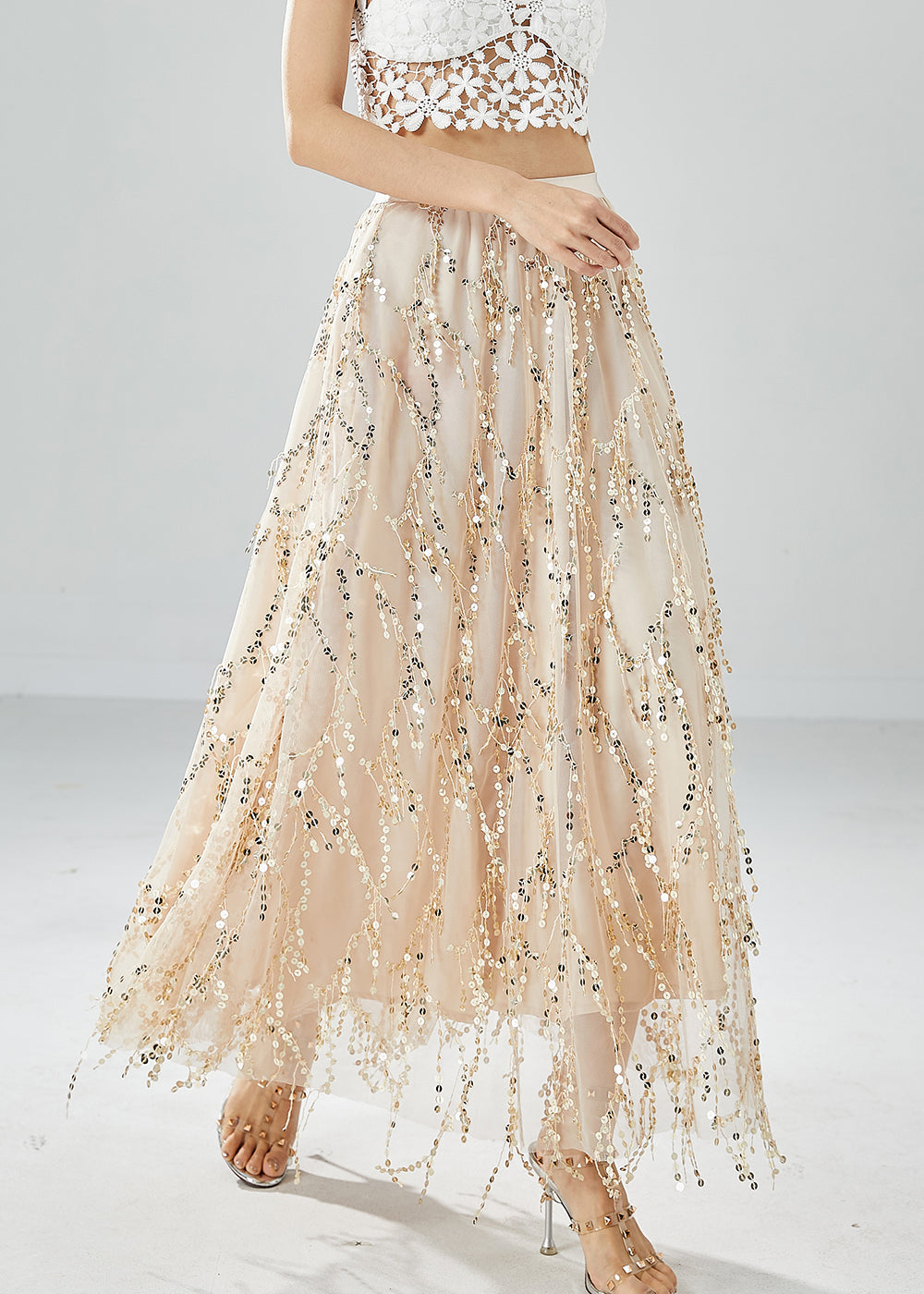 Modern Apricot Sequins Tassel Tulle Skirt Summer