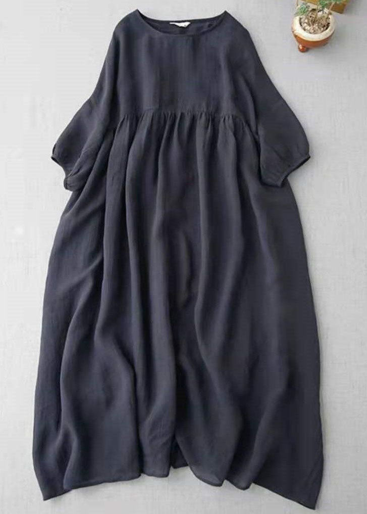 Modern White O-Neck Patchwork cotton blend Long Dresses Half Sleeve