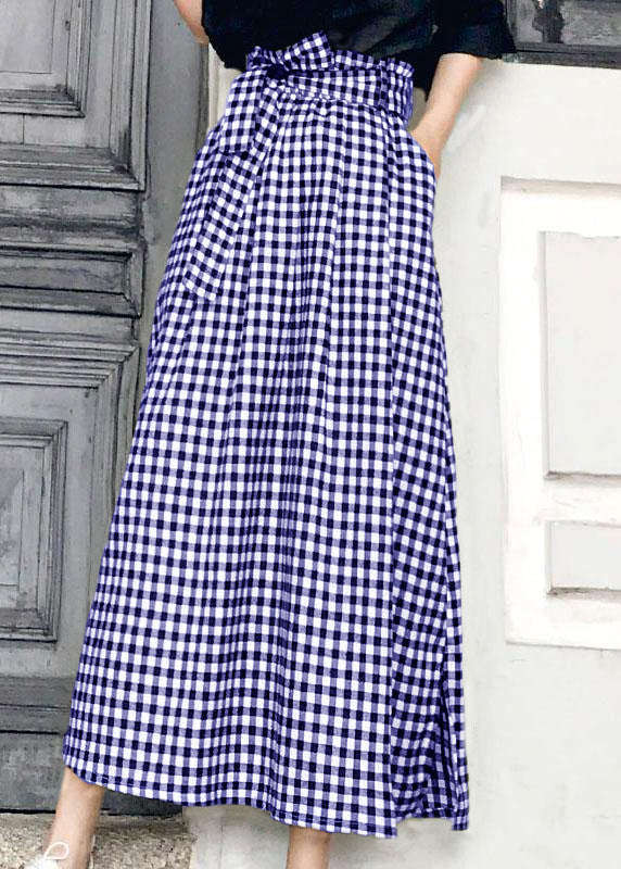 Natural Black White Plaid Bow A Line Summer Skirt Cotton