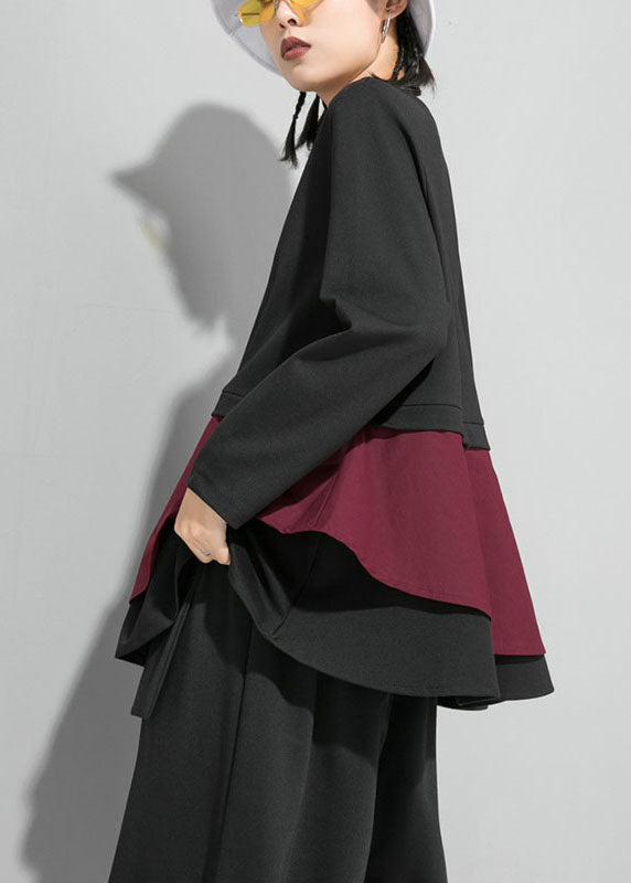 Organic Mulberry O-Neck Patchwork Ruffles Fall Top Long sleeve