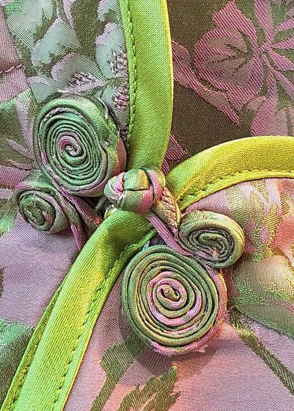 Oriental Pink Stand Collar button Asymmetrical print silk tops Spring
