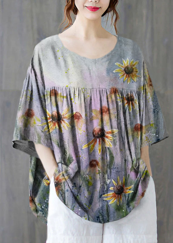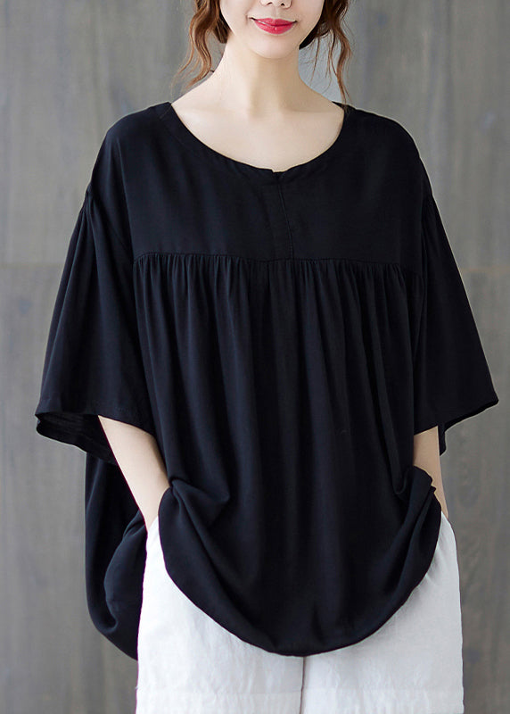 Plus Size Black O-Neck wrinkled Cotton Tank Tops Half Sleeve
