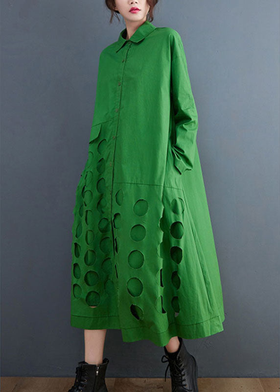 Plus Size Green PeterPan Collar Patchwork Cotton Dress Spring