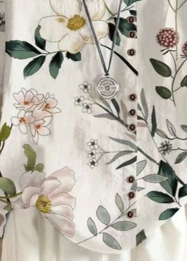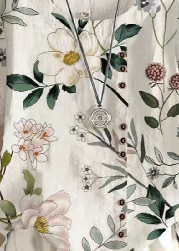 Plus Size White O Neck Print Patchwork Linen T Shirts Tops Summer