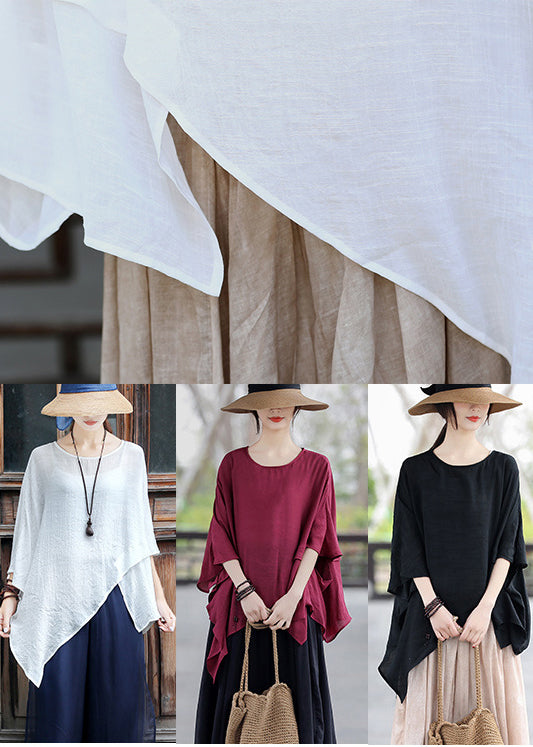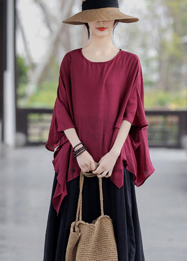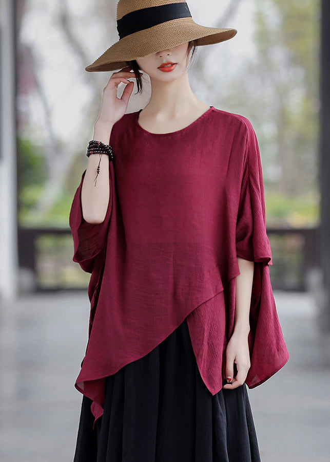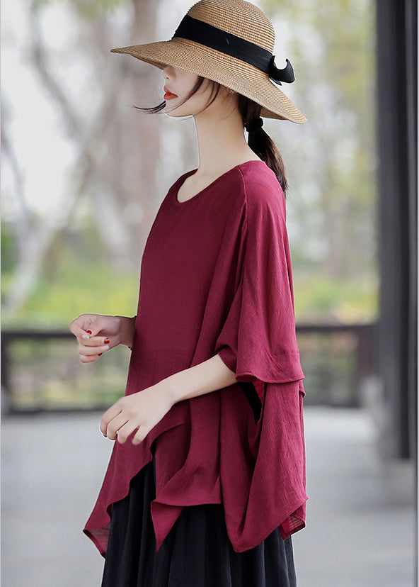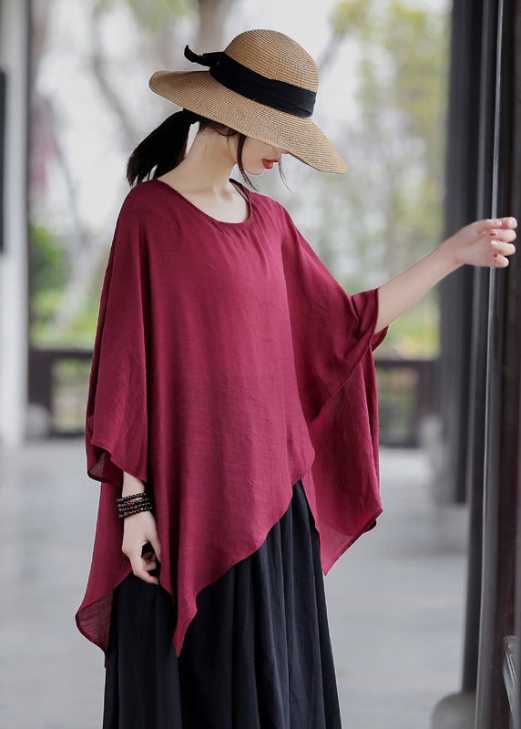 Red Loose Cotton Tank Tops Asymmetrical Design Batwing Sleeve