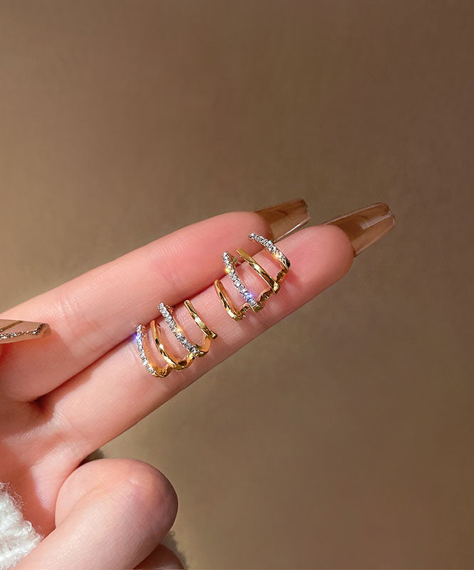 Regular Gold Alloy Inlaid Zircon Hoop Earrings