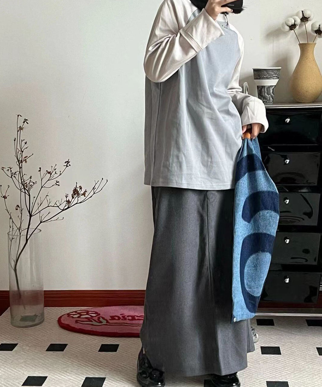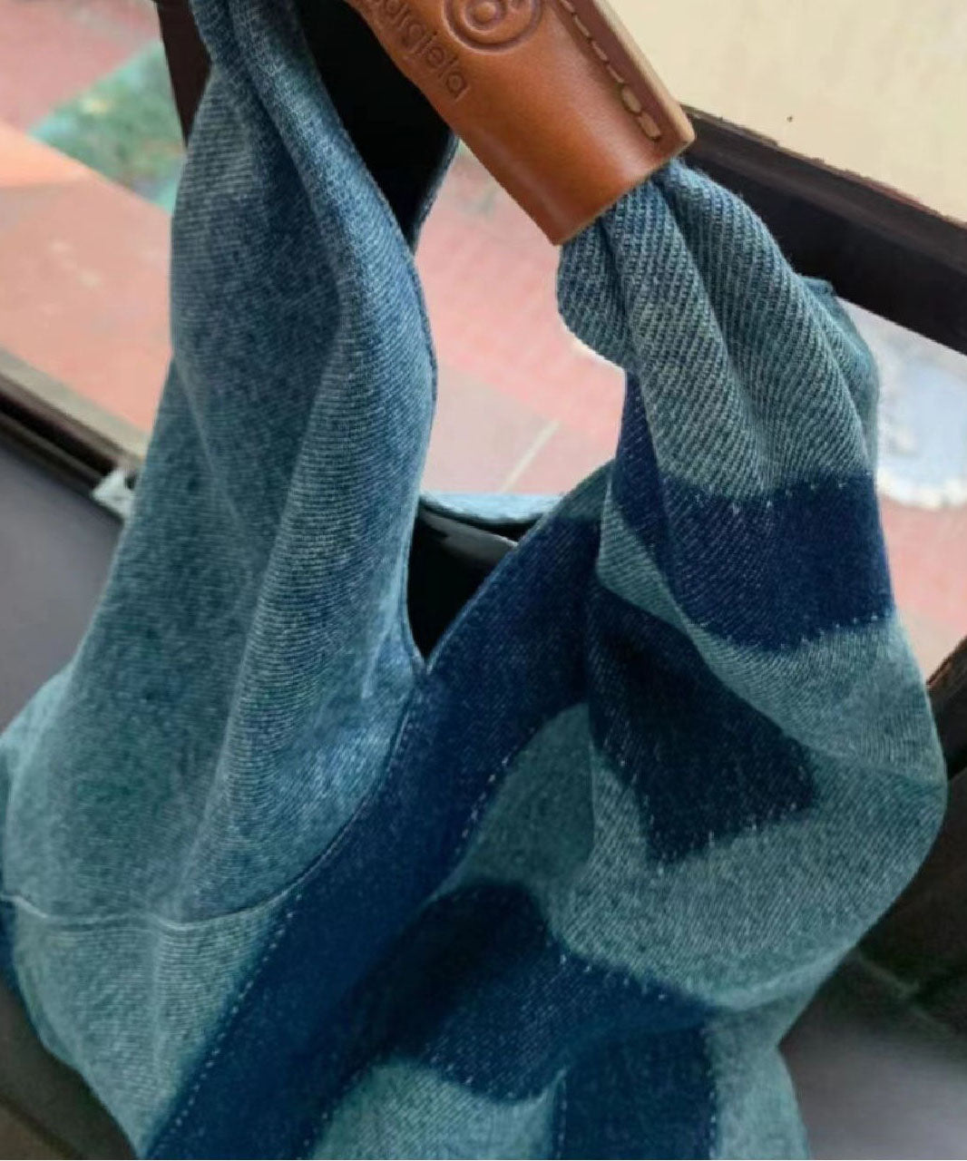 Retro Blue Letter Print Patchwork Denim Shopping Bag