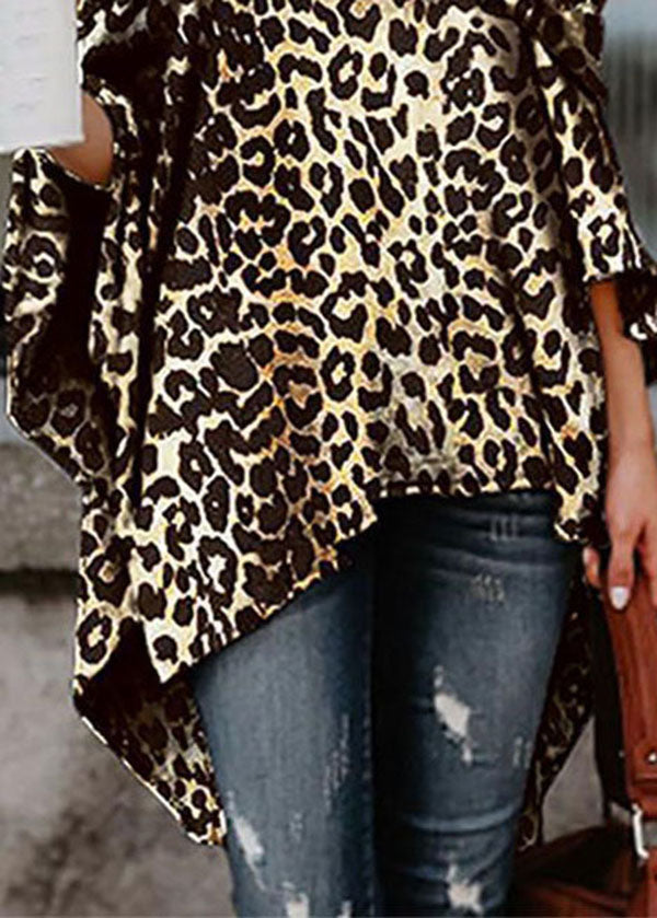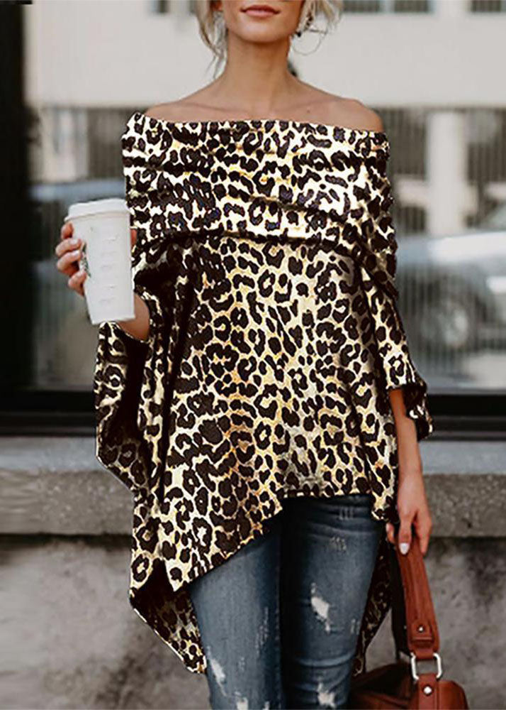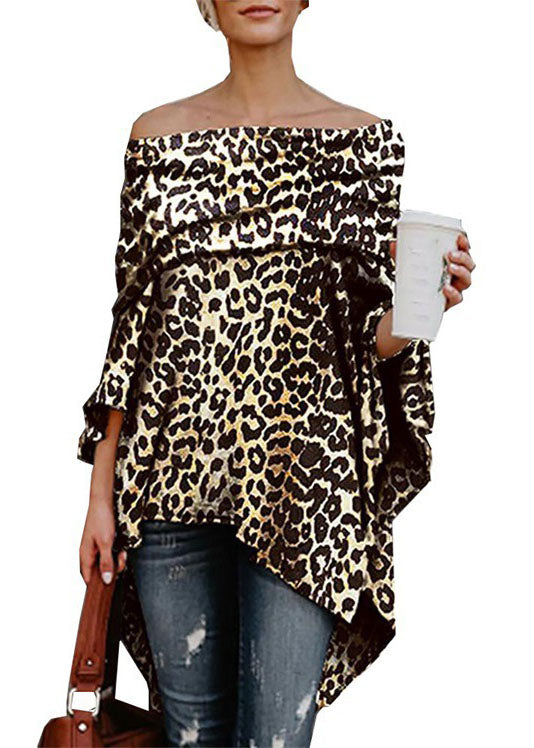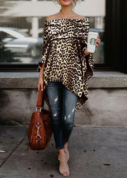 Sexy Slash neck Asymmetrical Design Off The Shoulder Leopard Print Top Summer