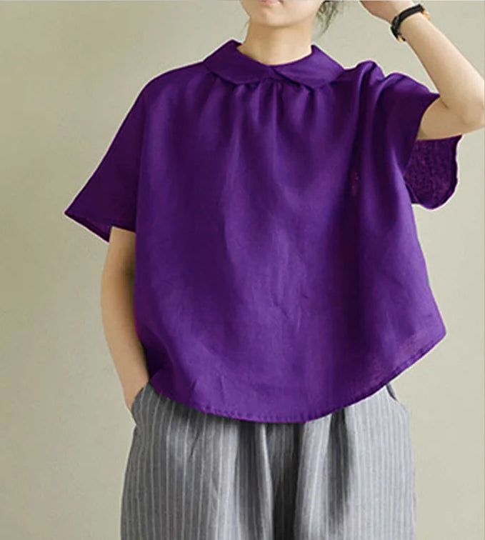 Simple White Peter Pan Collar Solid Linen Shirt Summer