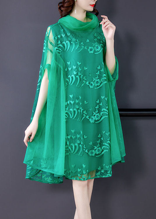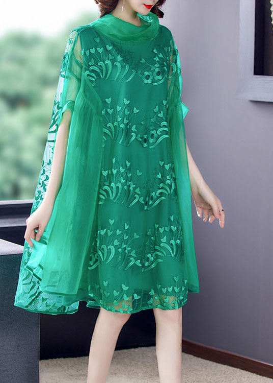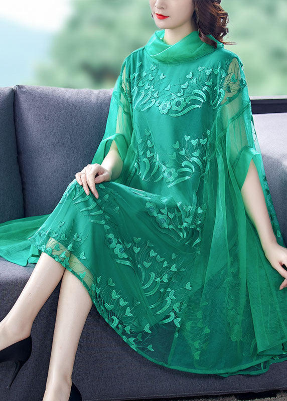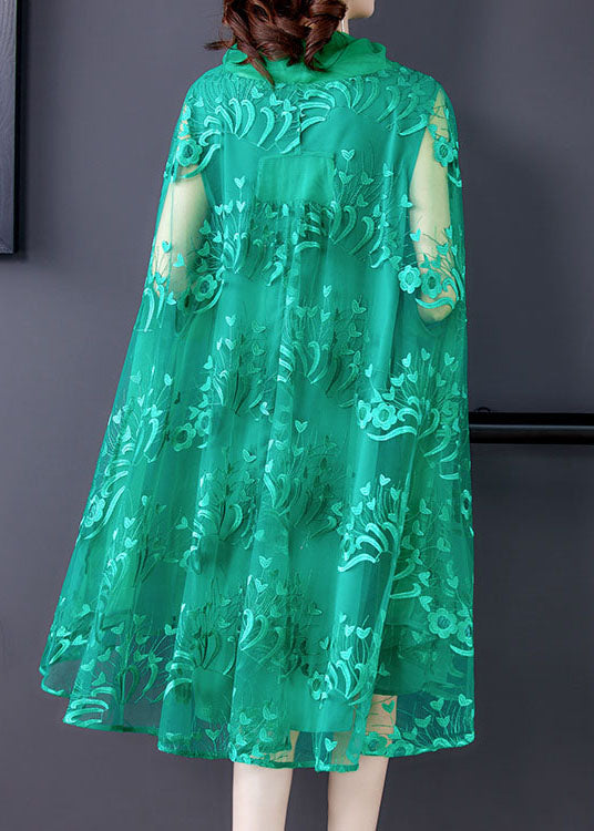 Style Green Embroideried Tulle Vacation Dresses Spring