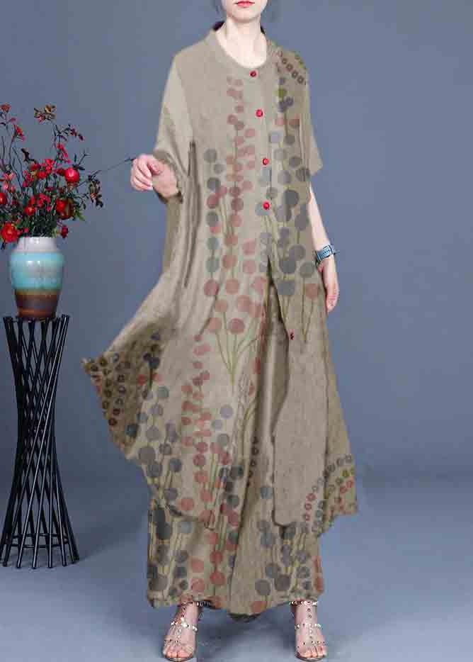 Summer 2021 Loose Silk Red Print Coat + Two Piece Pants