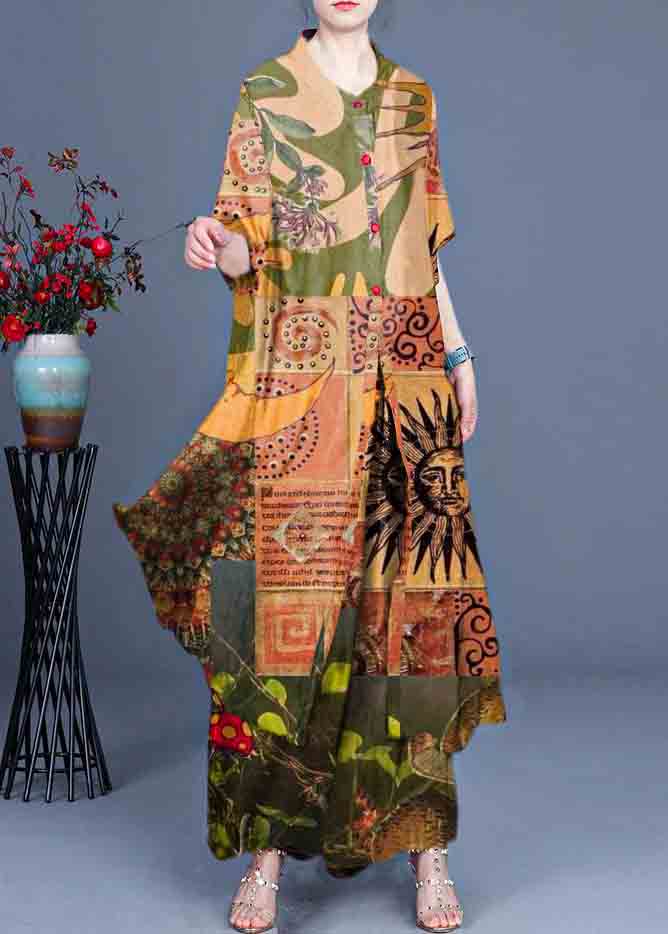 Summer 2025 Loose Silk Red Print Coat + Two Piece Pants