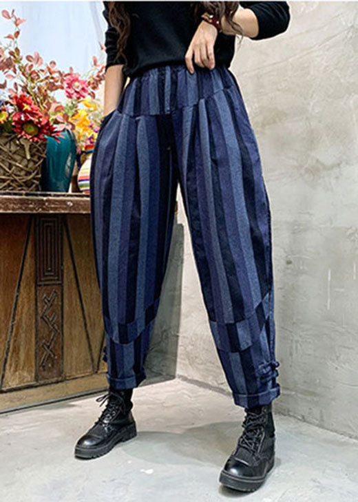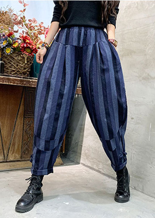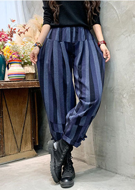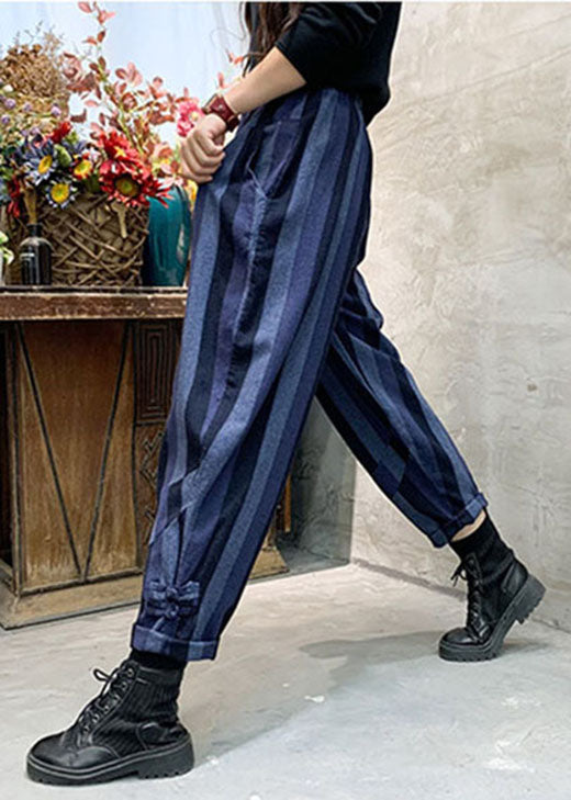 Unique Blue Striped Cotton casual Pants Spring