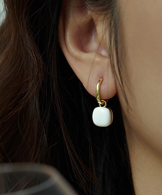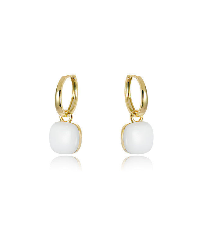Unique Green Copper Overgild 18K Gem Stone Square Drop Earrings