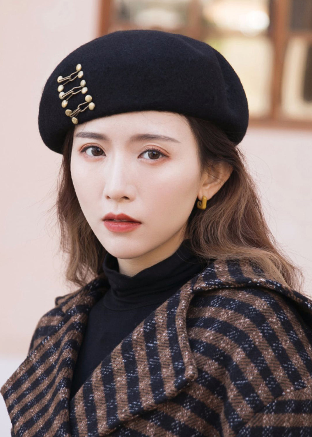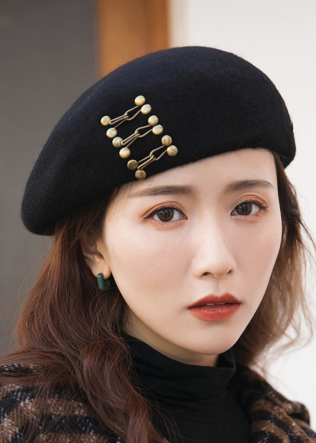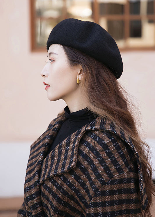 Unique New Black Rivet Decorated Woolen Beret Hat