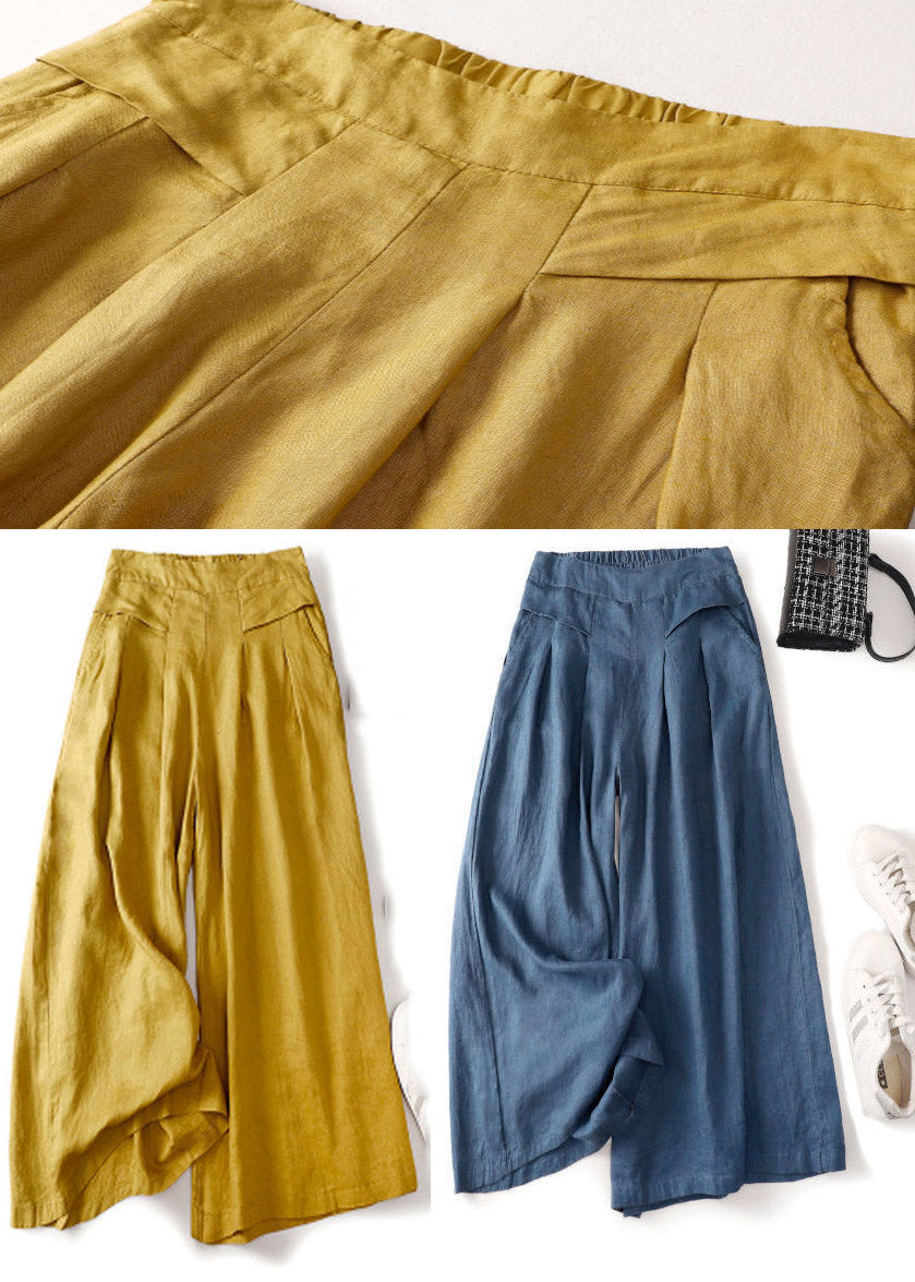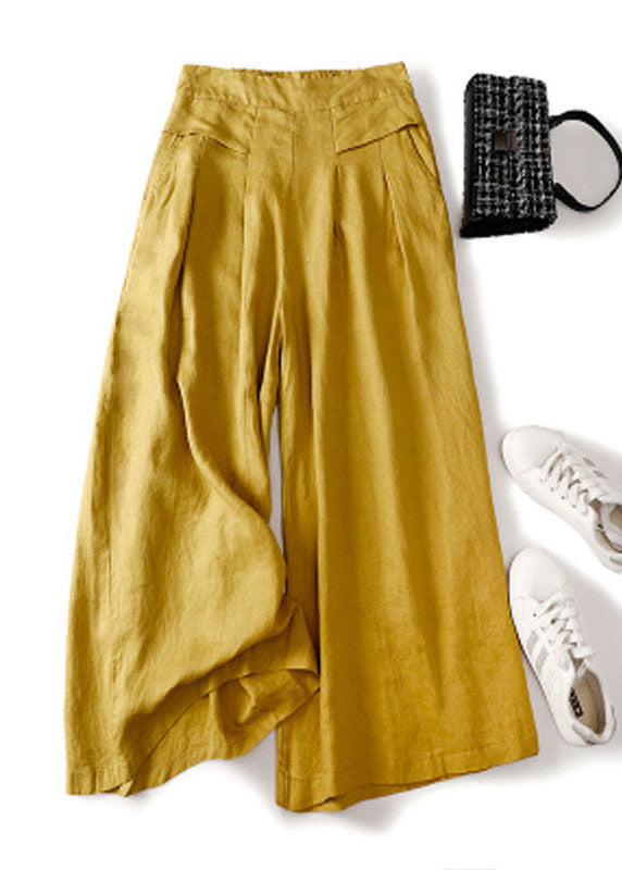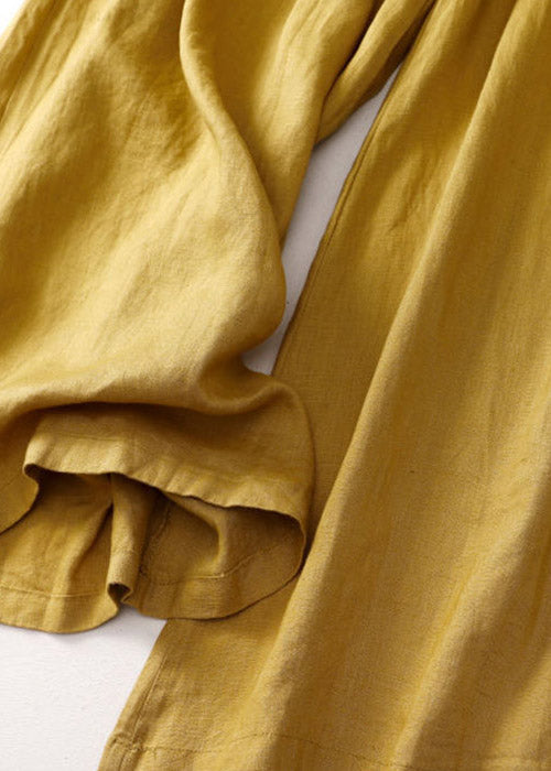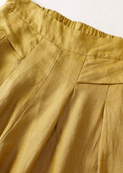 Unique Yellow Pockets Elastic Waist Linen Pants Summer