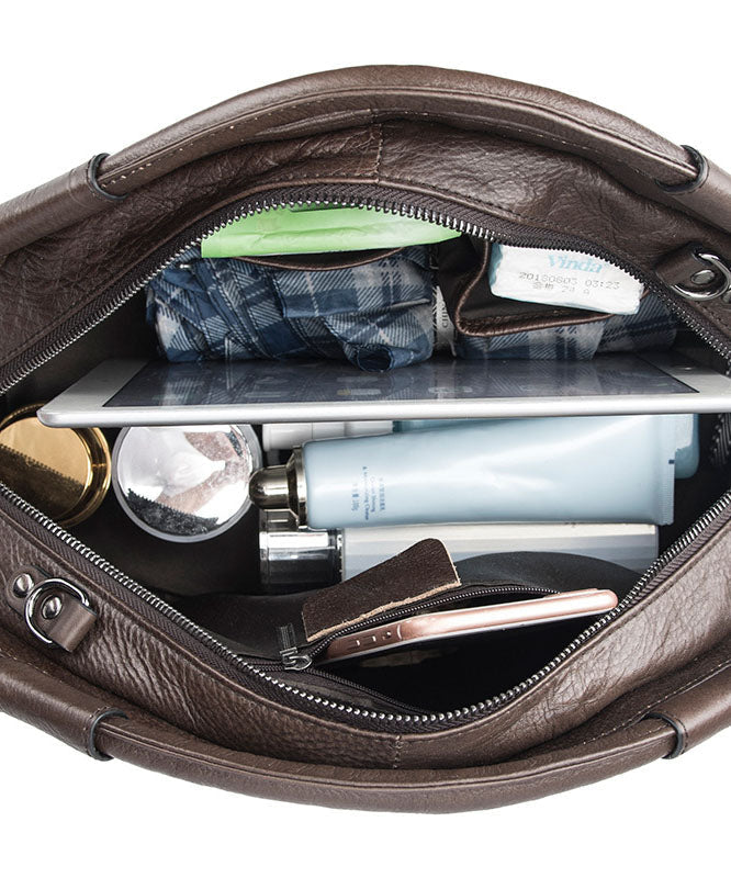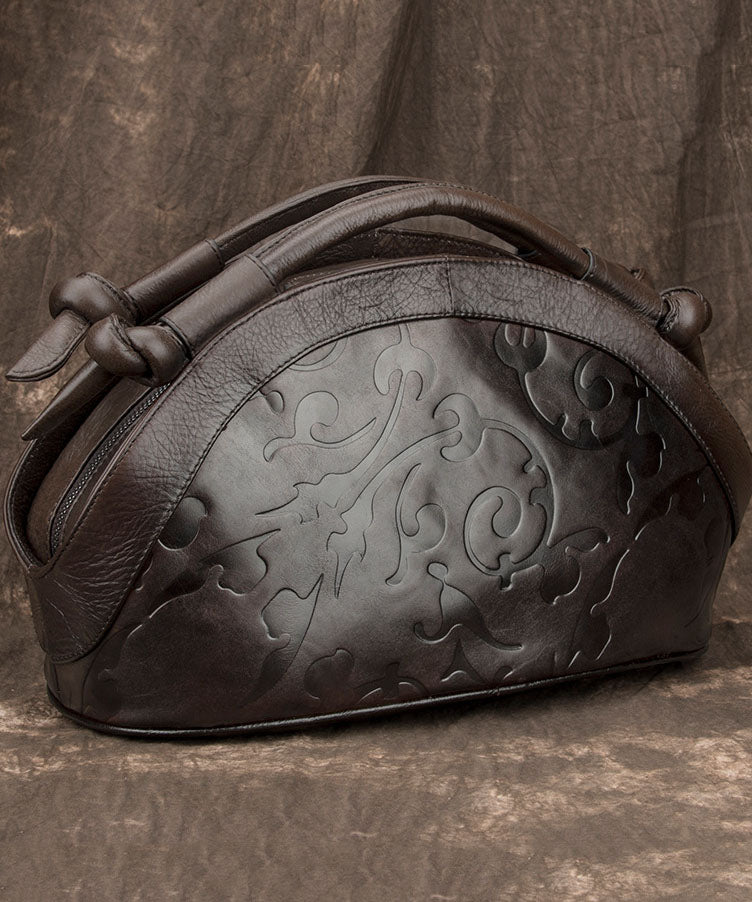 Vintage Chocolate Embossing Calf Leather Women's Tote Handbag