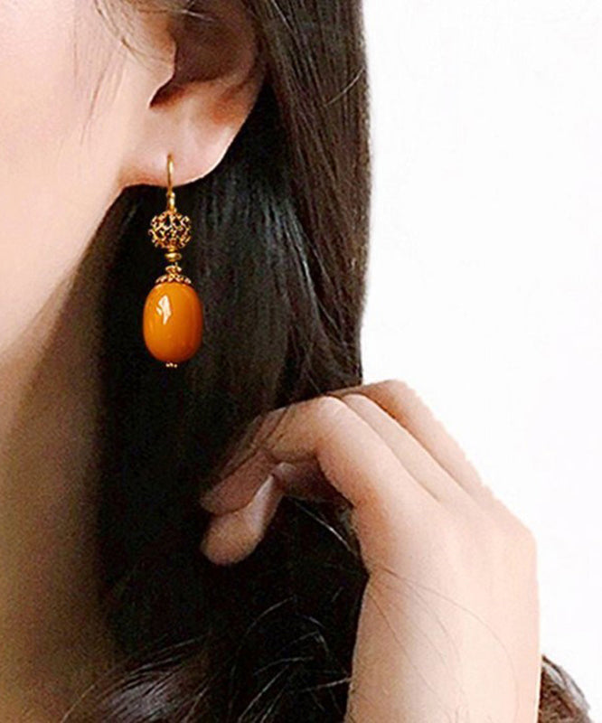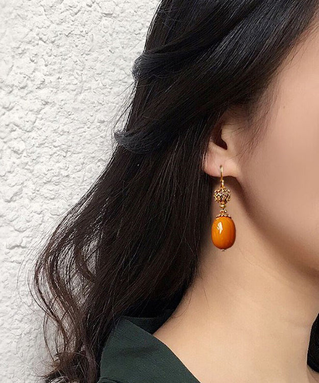 Vintage Orange Sterling Silver Ancient Gold Beeswax Drop Earrings