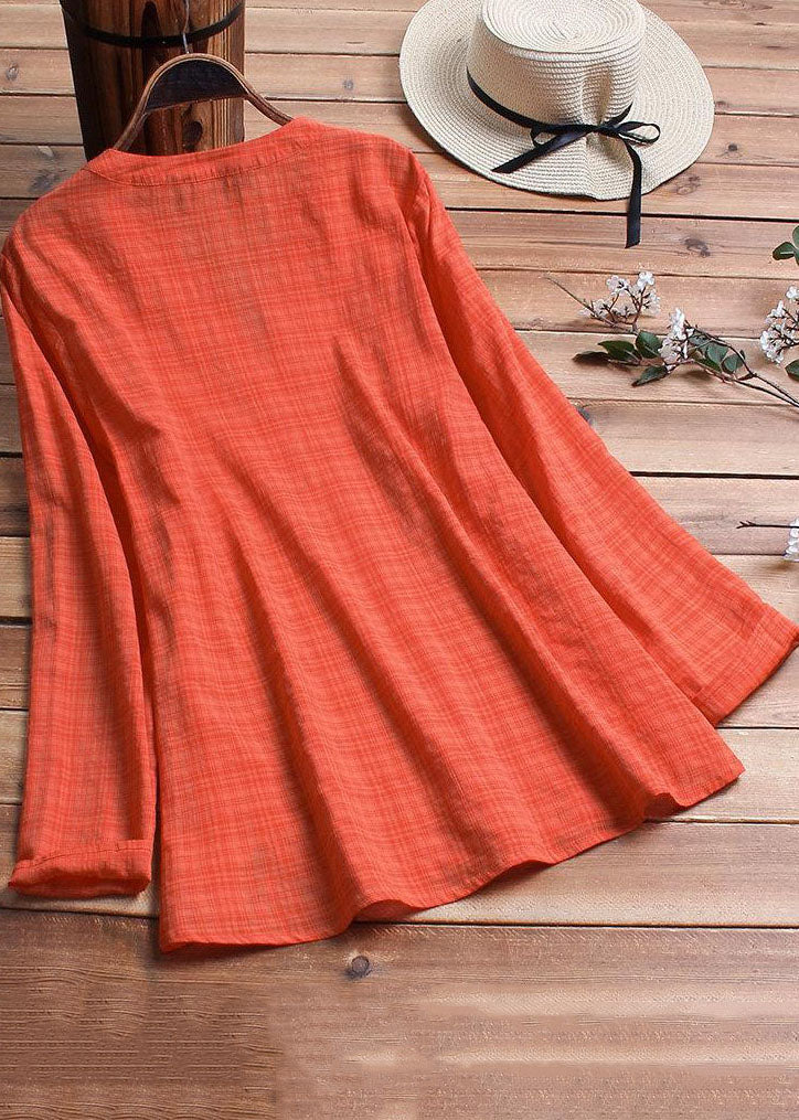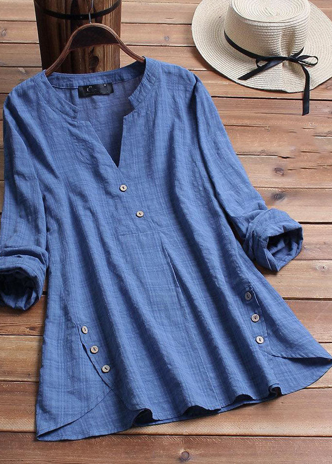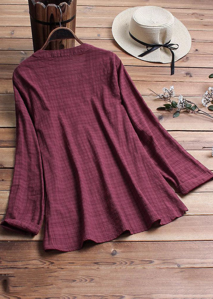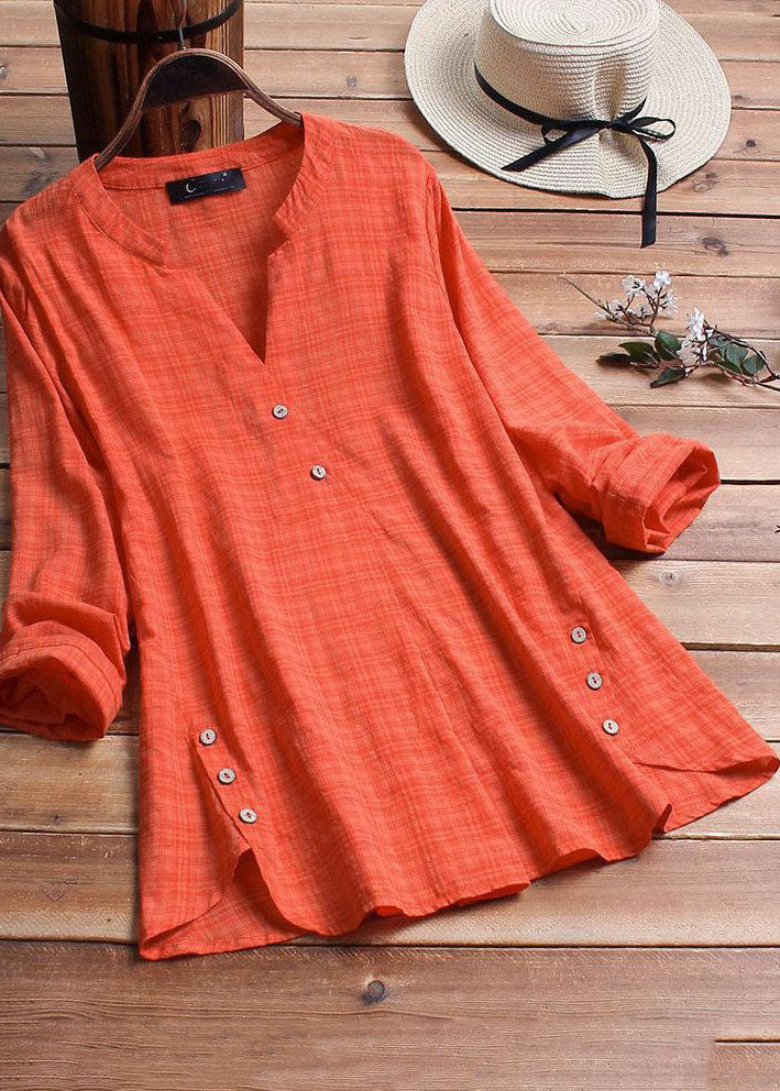 Vintage Plaid Side Button V-neck Long Sleeve Plus Size Shirt Blouse