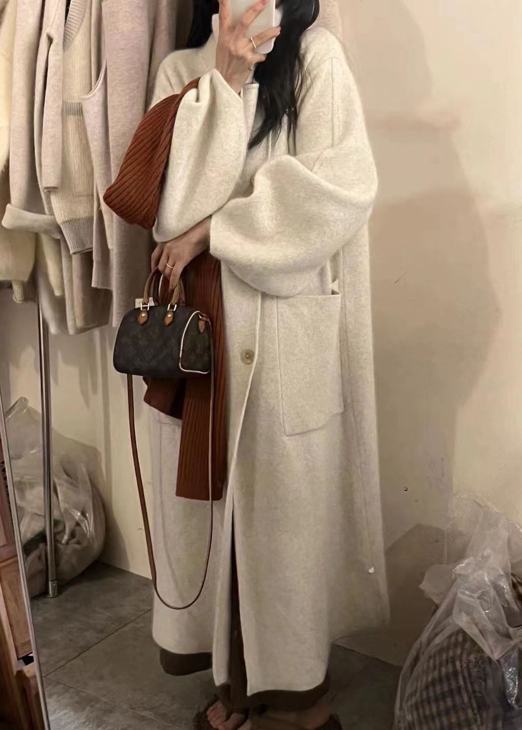 Women Pink Turtleneck Button Pockets Cotton Knit Long Coats Long Sleeve